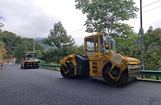自8月5日正式开工以来,金寨交通便树立了“抢跑双节”的目标。面对山区施工难度大、材料运输不便、梅雨季节连续阴雨天气等不利条件,发扬攻坚精神,与时间赛跑。为最大限度提升施工效率,项目科学组织,通过加大人员和设备投入、分段同步推进、优化物料调度等措施,投入多台摊铺机、压路机等大型设备协同作业,实现了沥青铺设、碾压、平整度检测等工序的无缝衔接,成功克服了不利因素,创造了提前一个半月通车的“金寨交通速度”。
