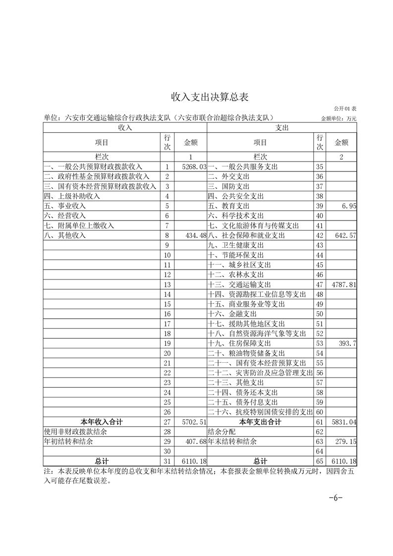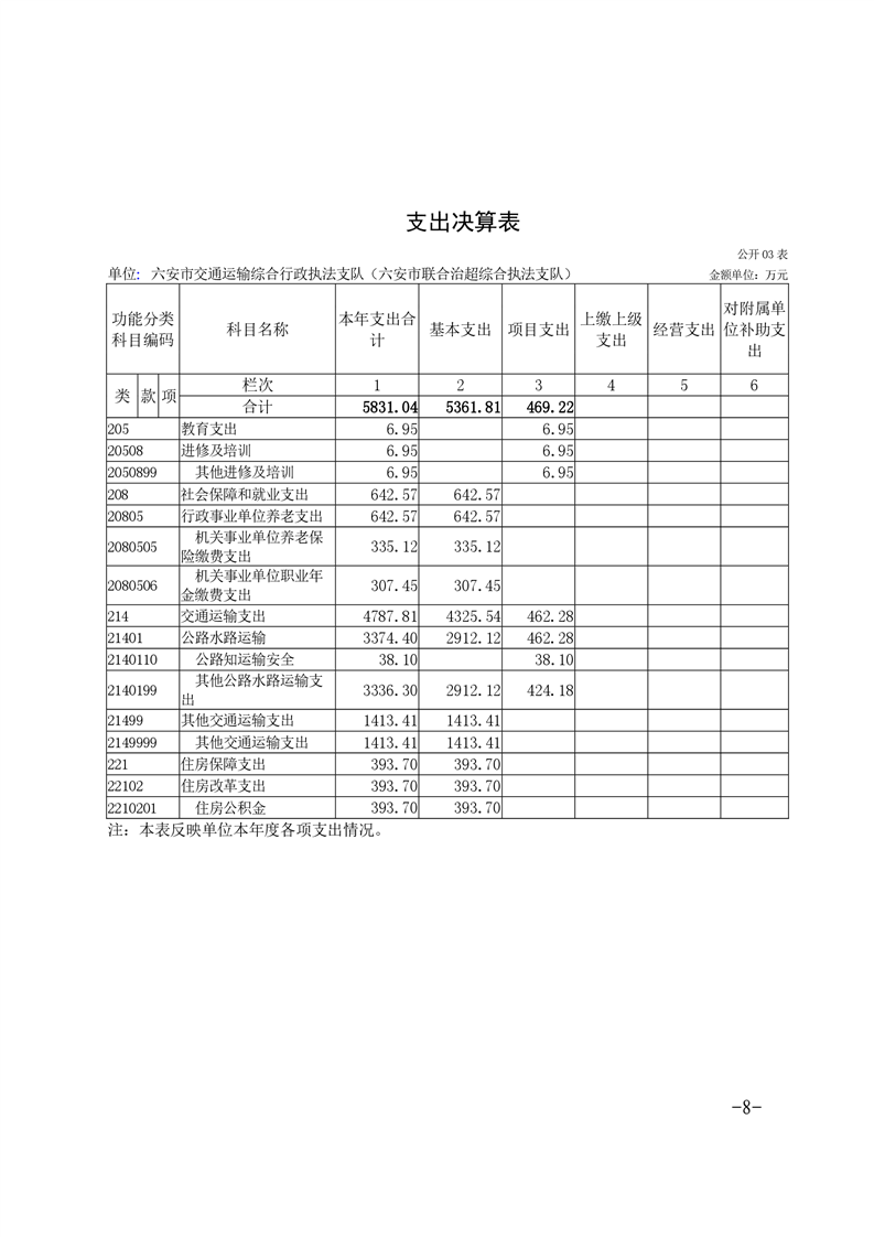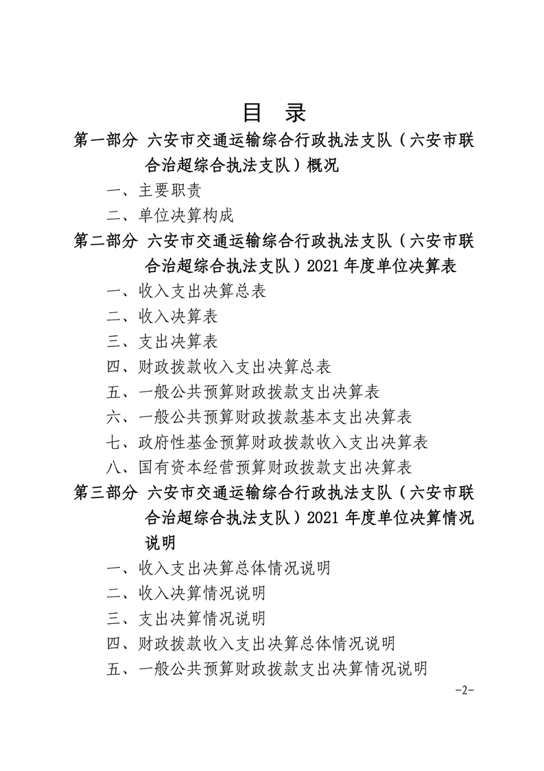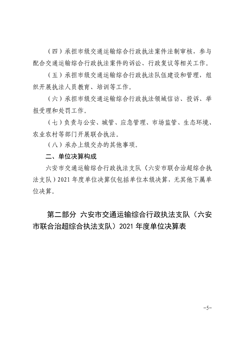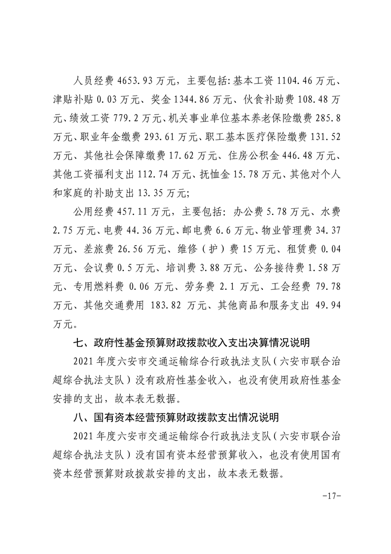 六安市交通运输综合行政执法支队(六安市联合治超综合执法支队)2021年度单位决算