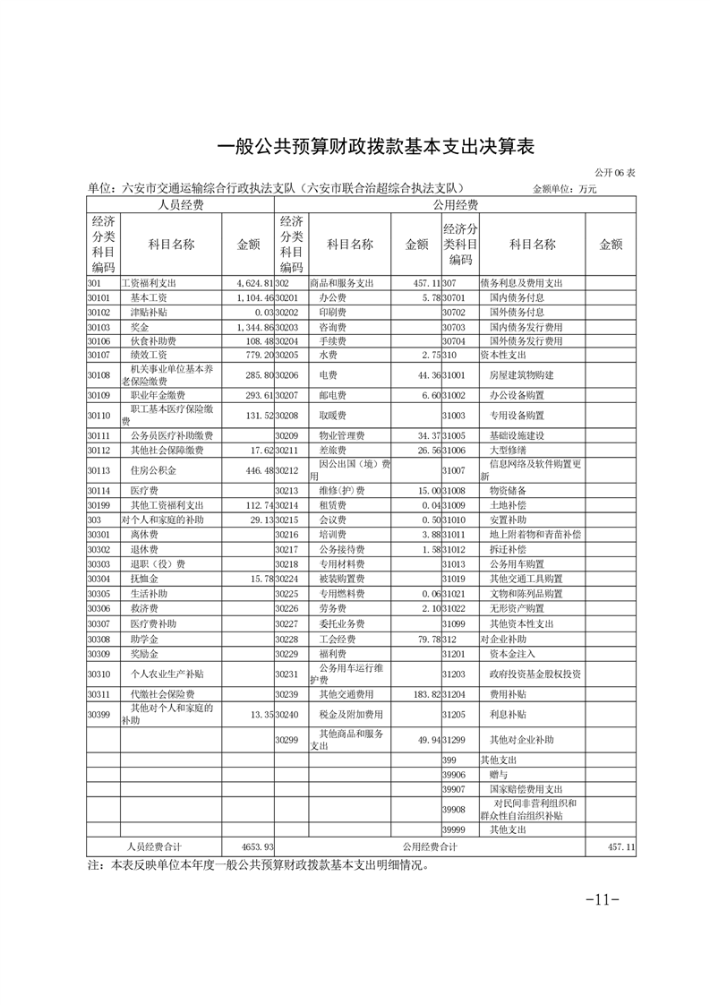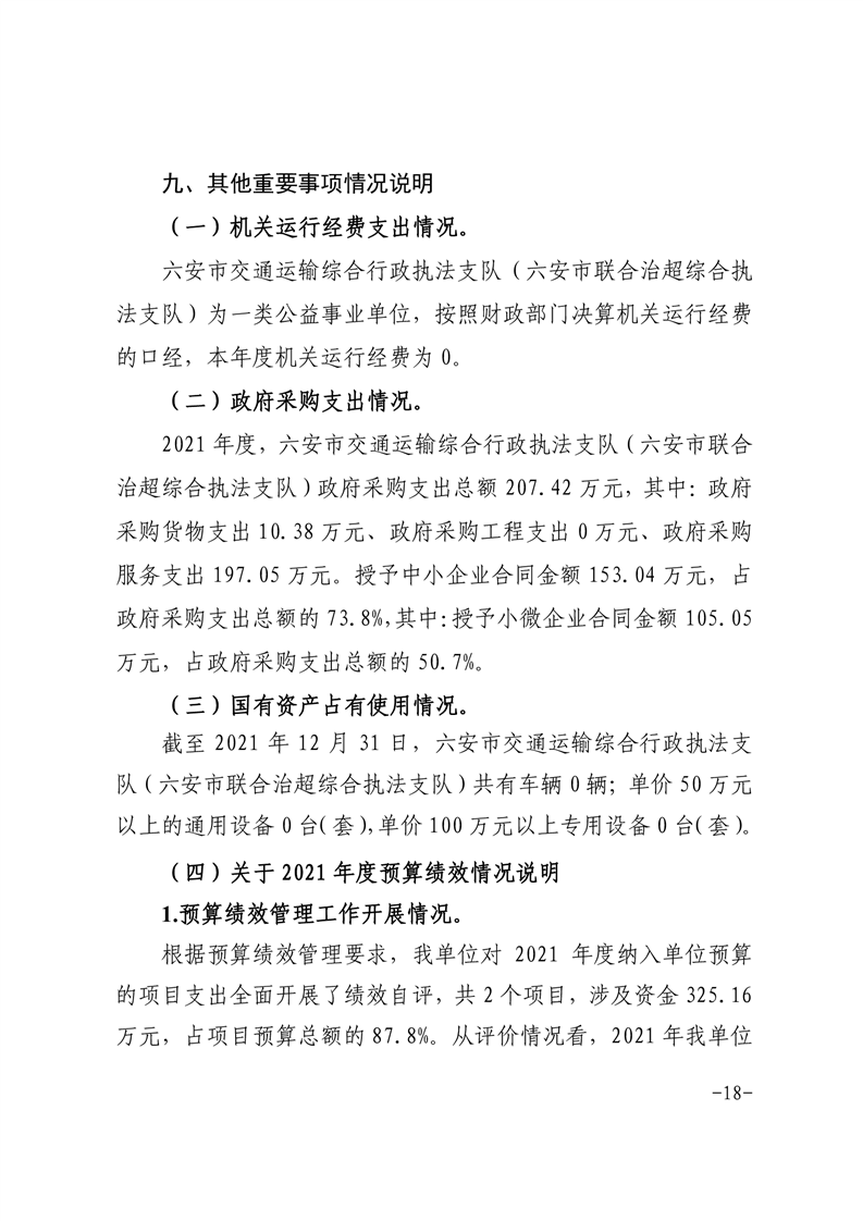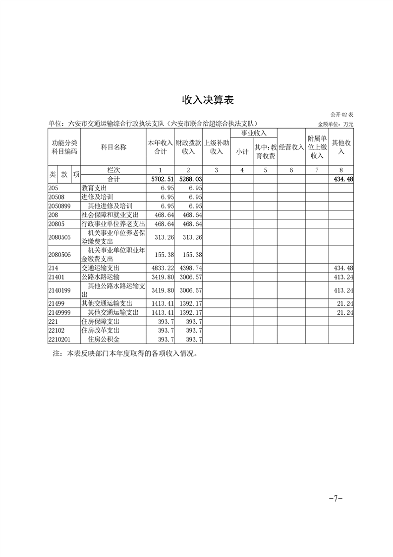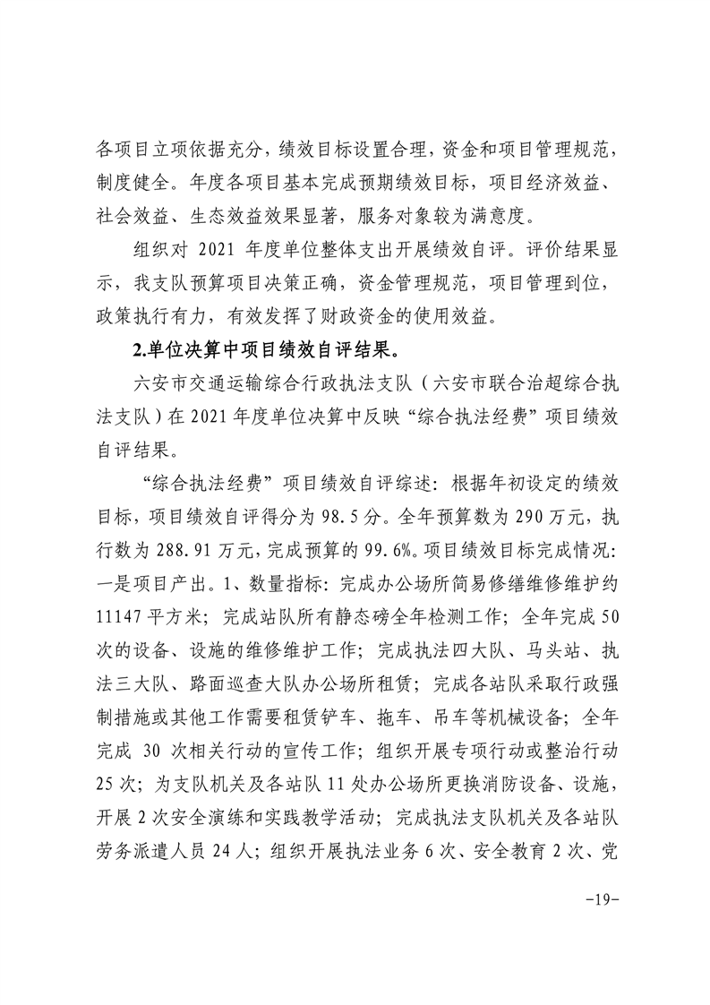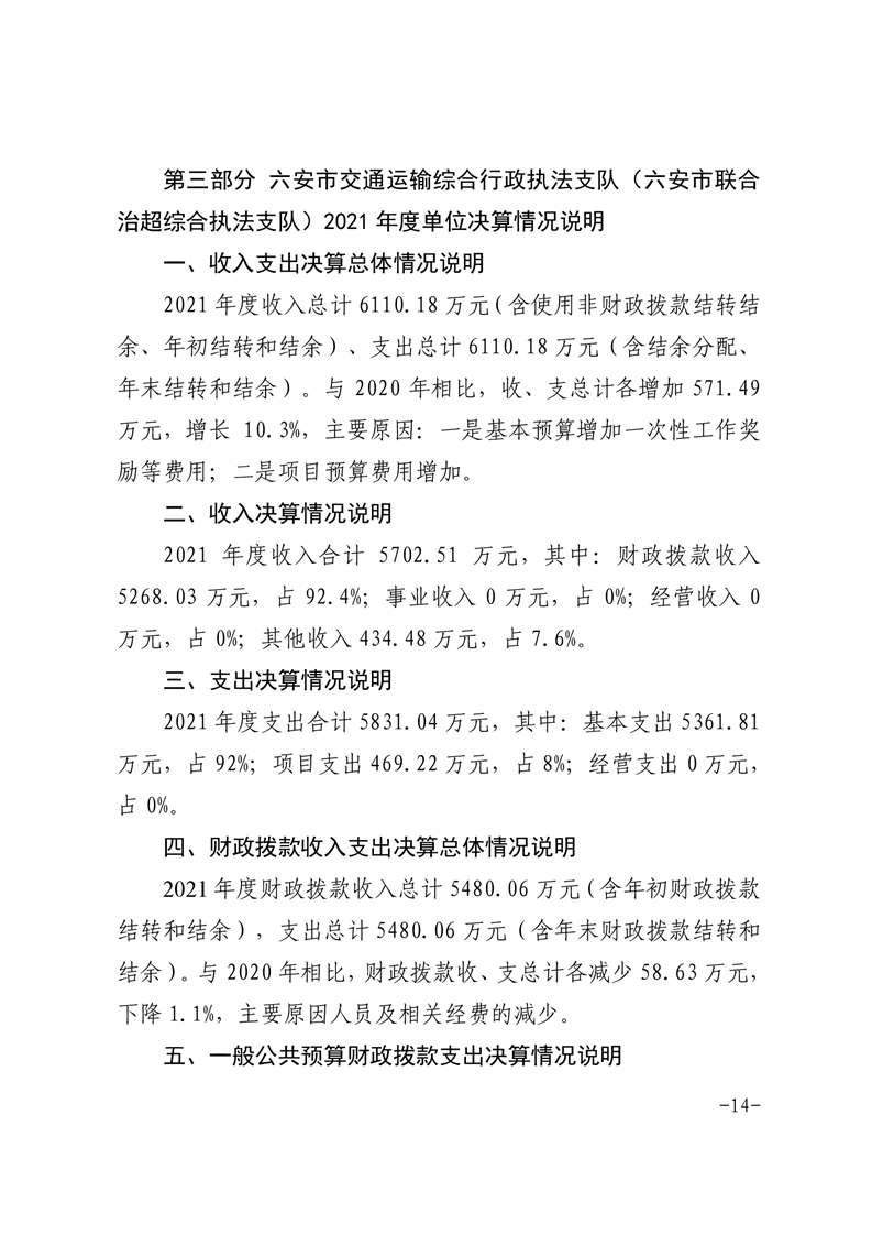 六安市交通运输综合行政执法支队(六安市联合治超综合执法支队)2021年度单位决算
