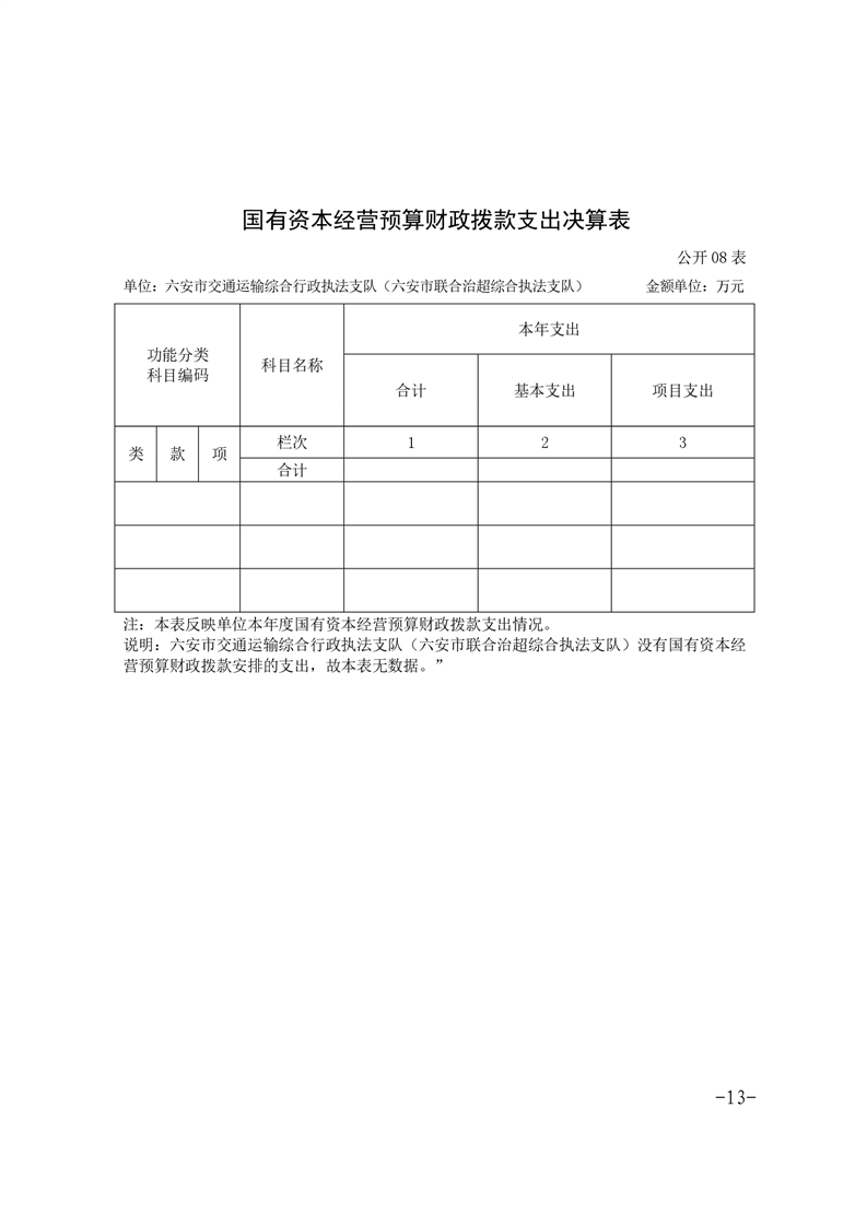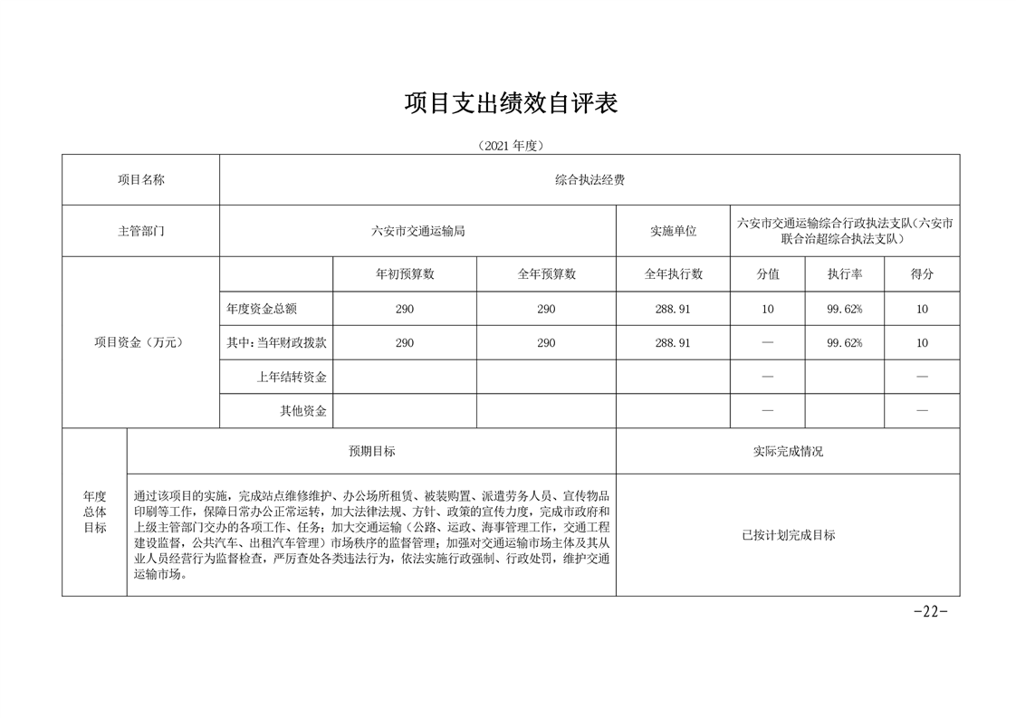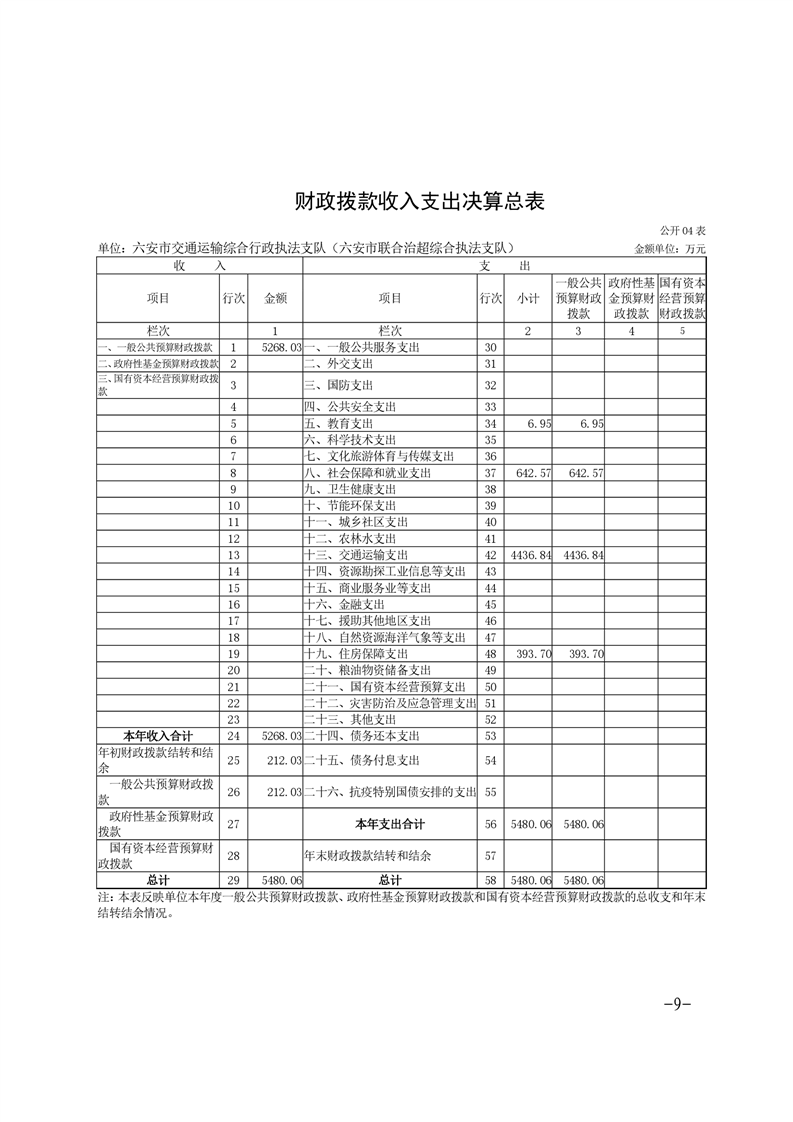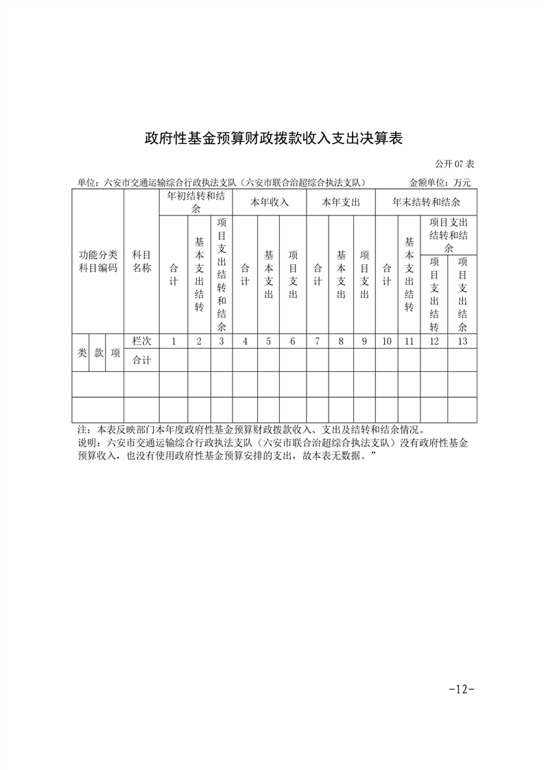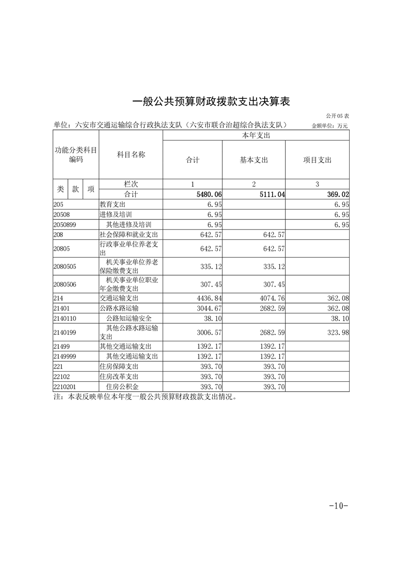 六安市交通运输综合行政执法支队(六安市联合治超综合执法支队)2021年度单位决算