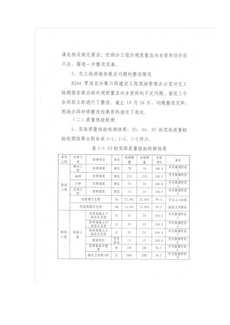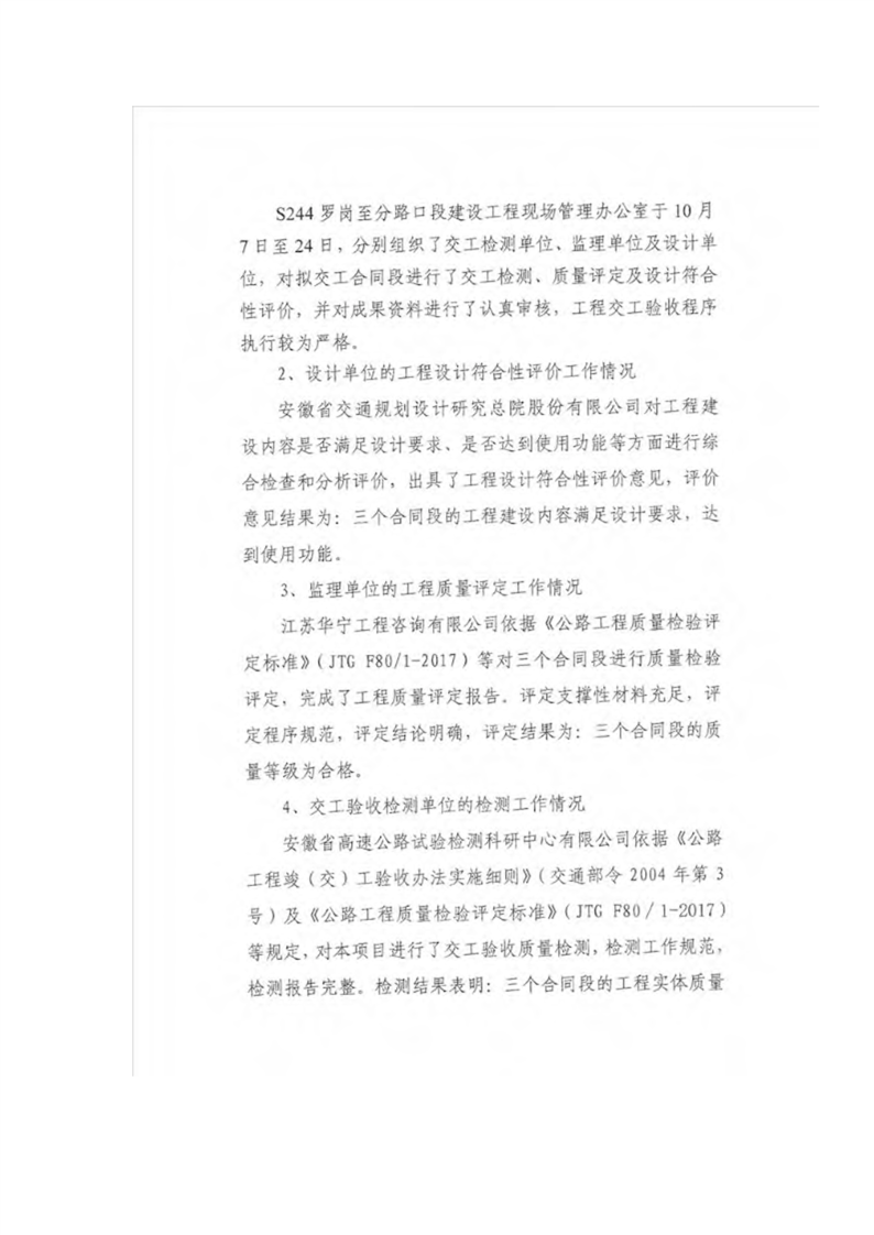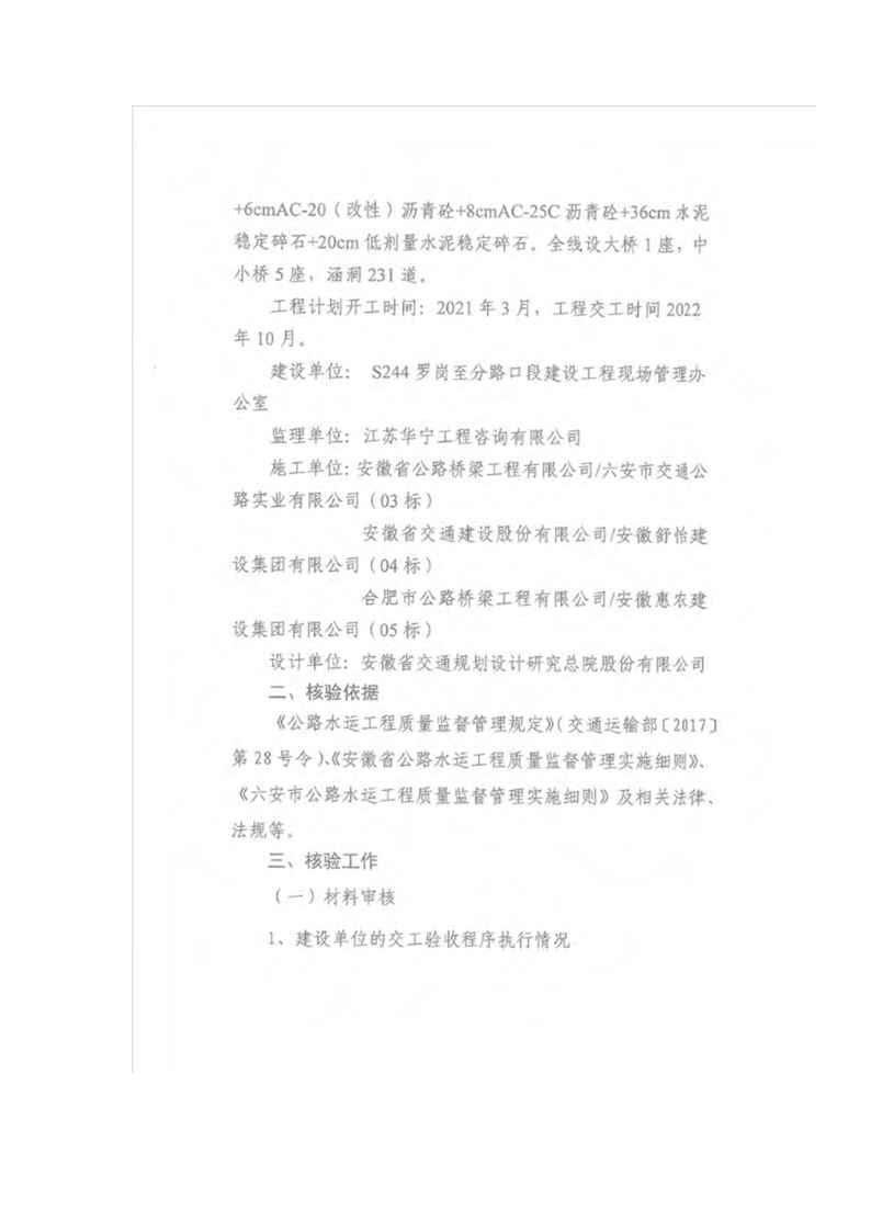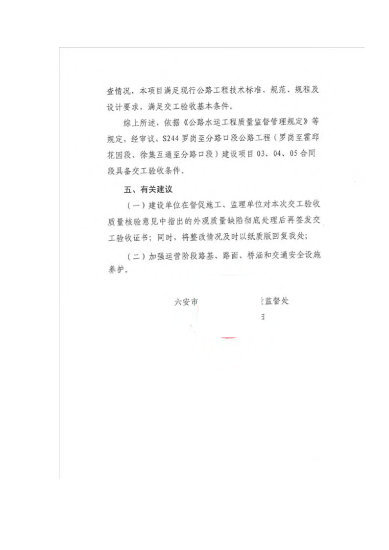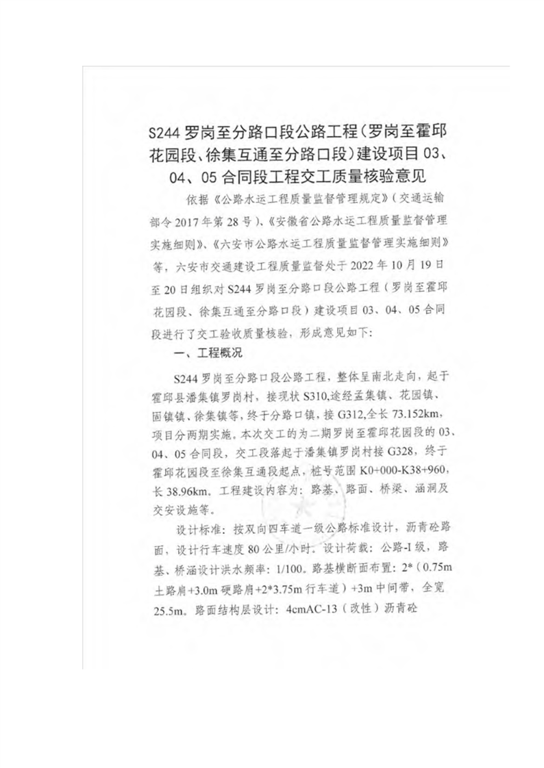 S244罗岗至分路口段公路工程(罗岗至霍邱花园段、徐集互通至分路口段)(二期)(3、4、5标) 工程交工质量核验意见