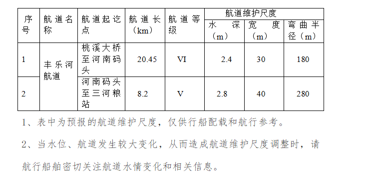 2025年8月份航道维护尺度信息表