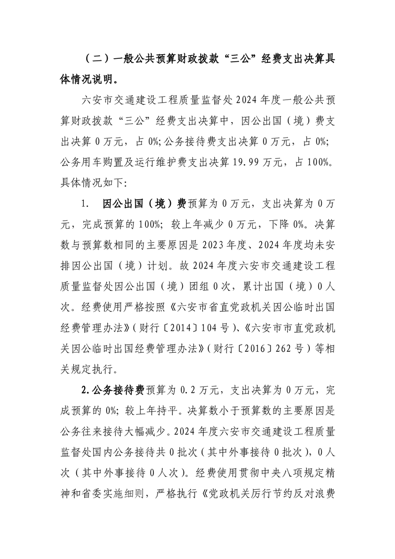 六安市交通建设工程质量监督处2024年度一般公共预算财政拨款“三公”经费支出决算