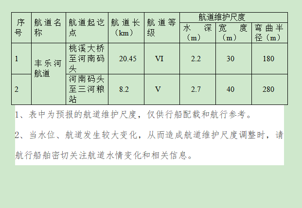 2025年12月份航道维护尺度信息表