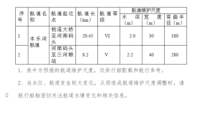 2026年1月份航道维护尺度信息表