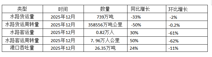 六安市2025年12月份水路运输量统计