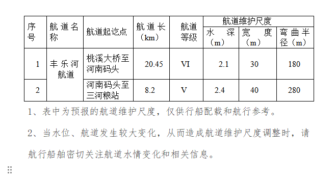 2026年3月份航道维护尺度信息表