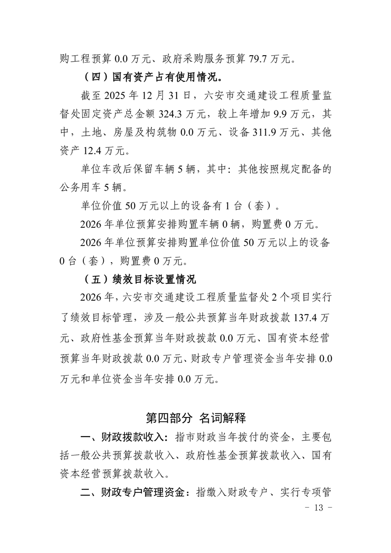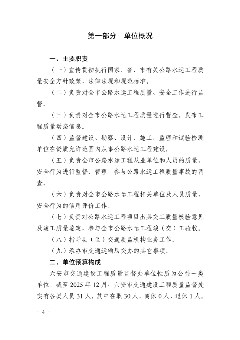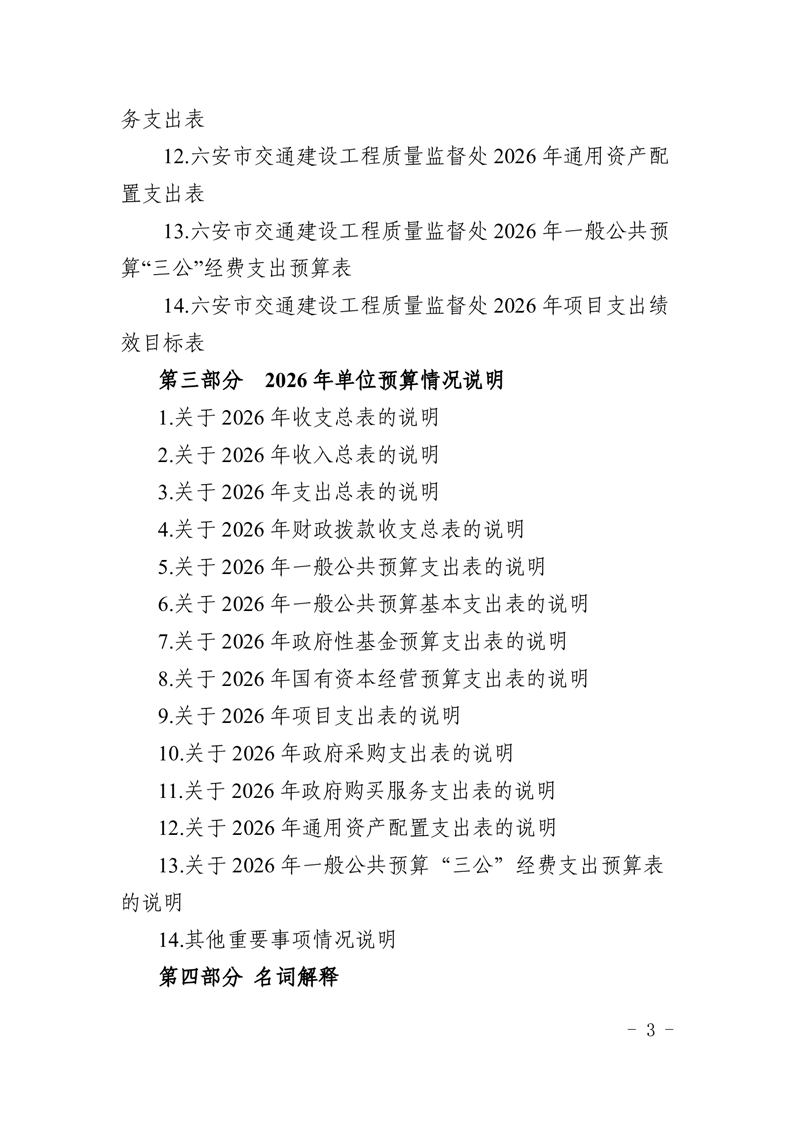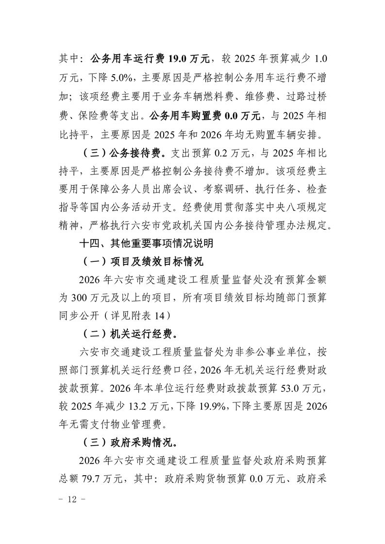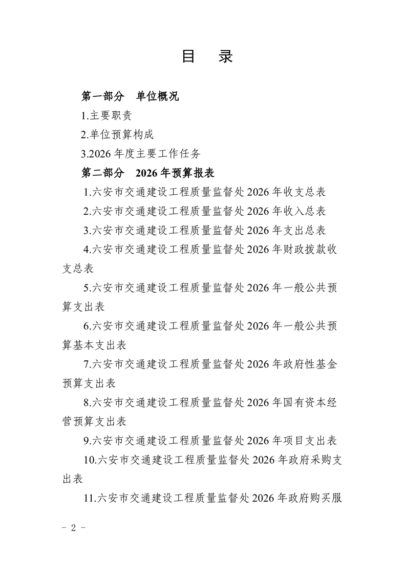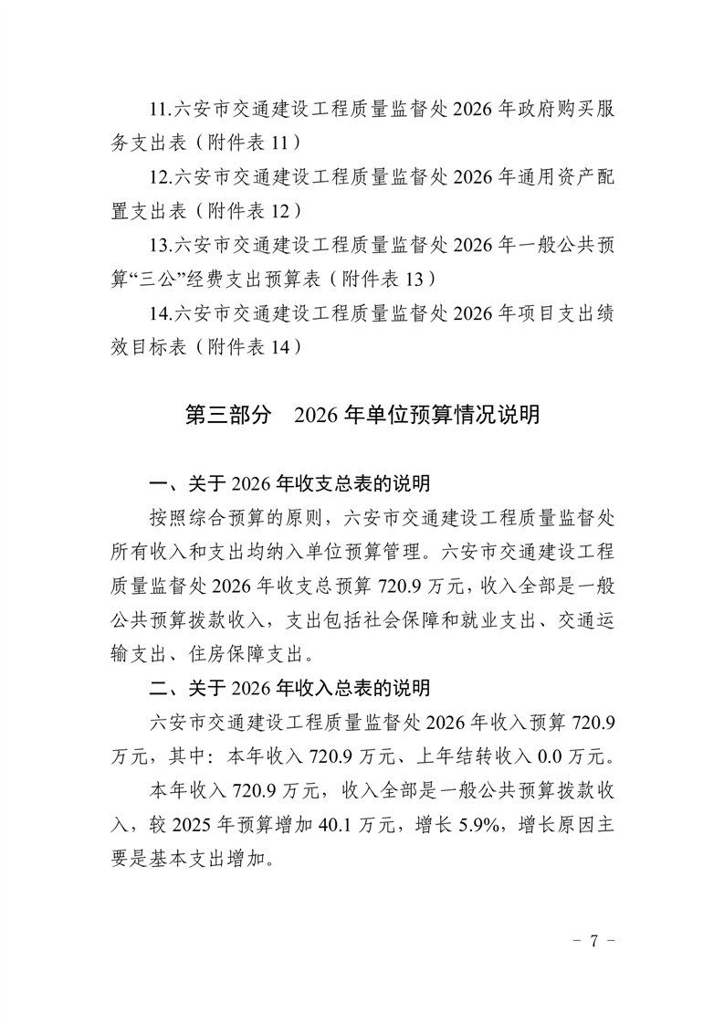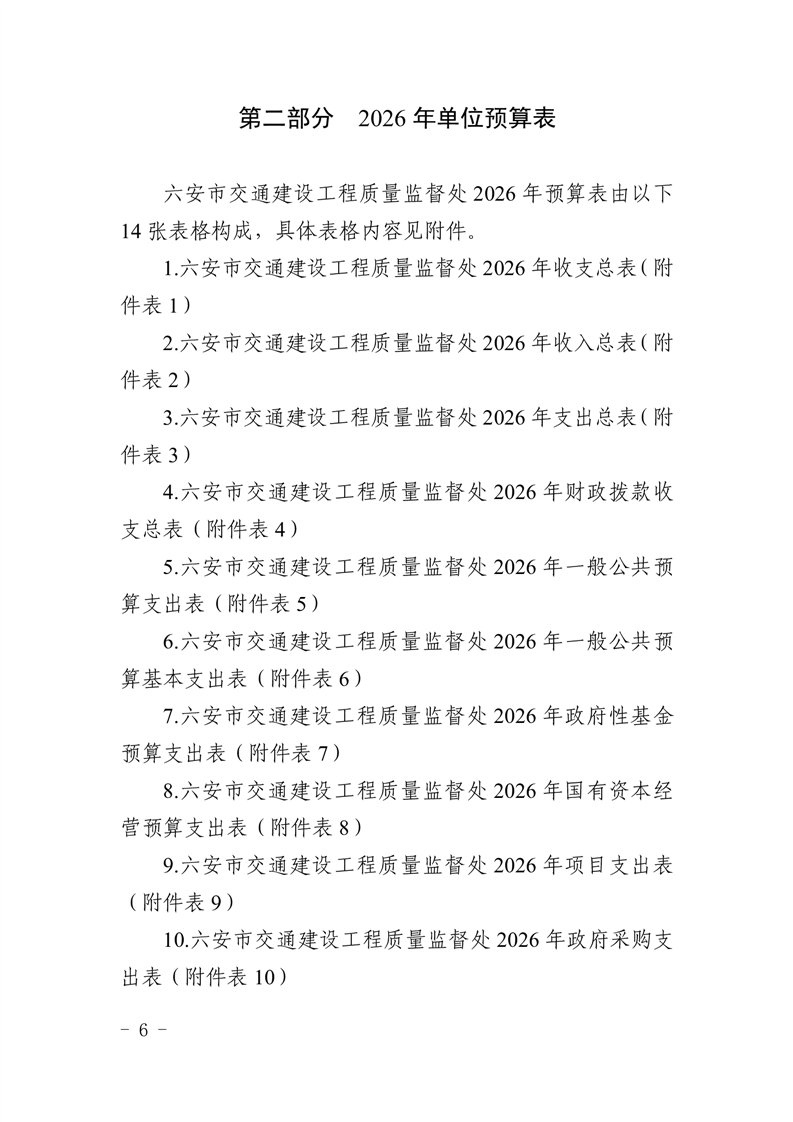 六安市交通建设工程质量监督处2026年单位预算