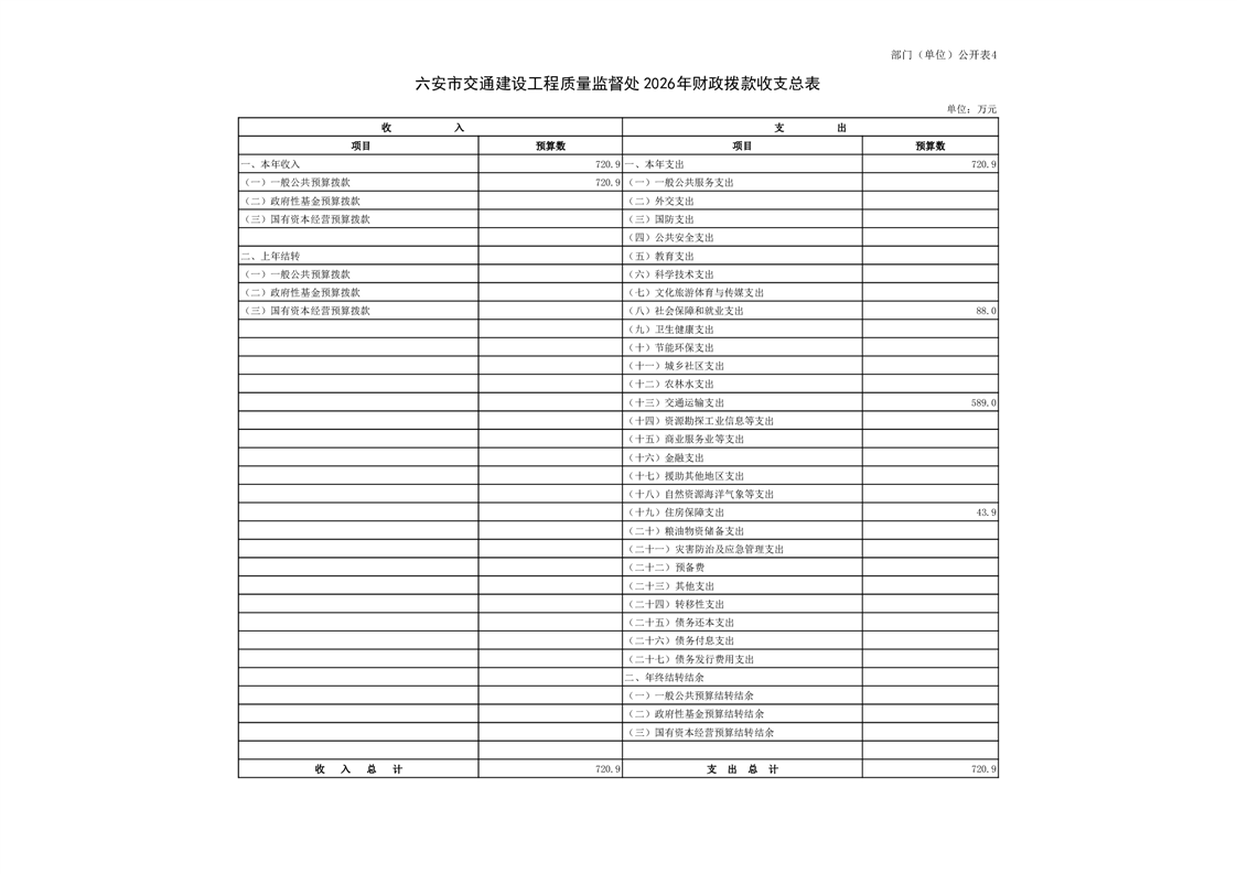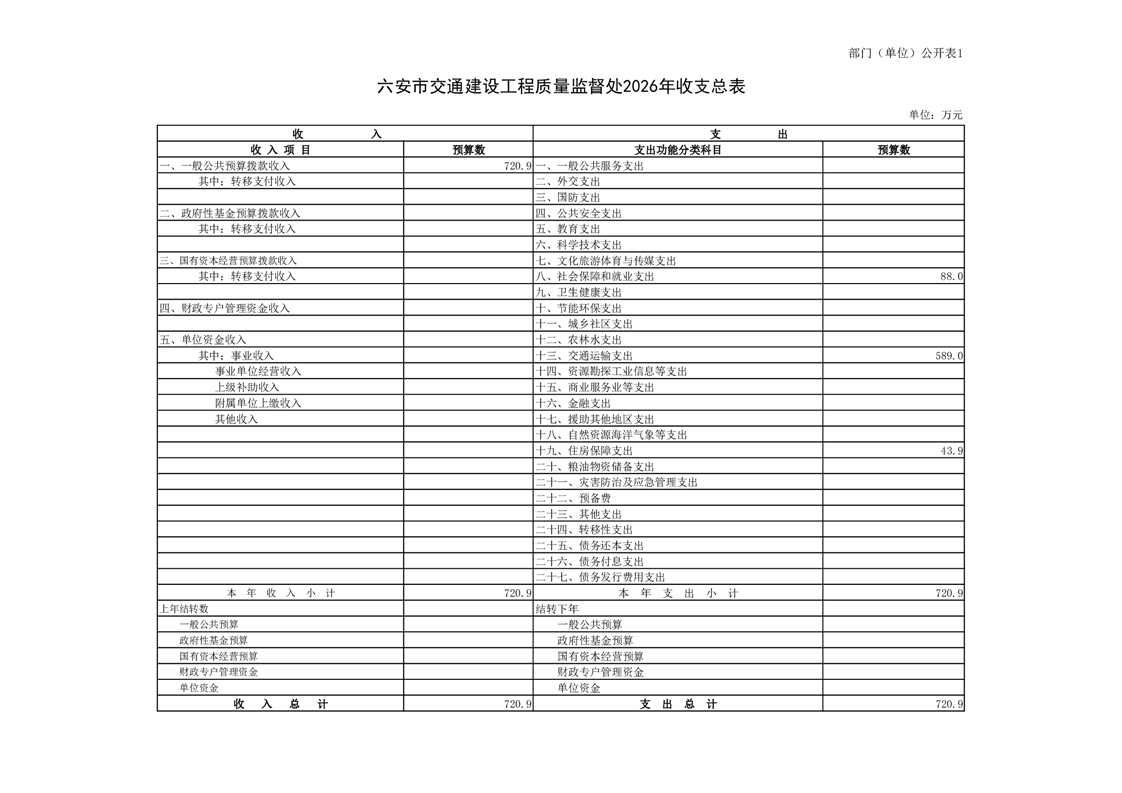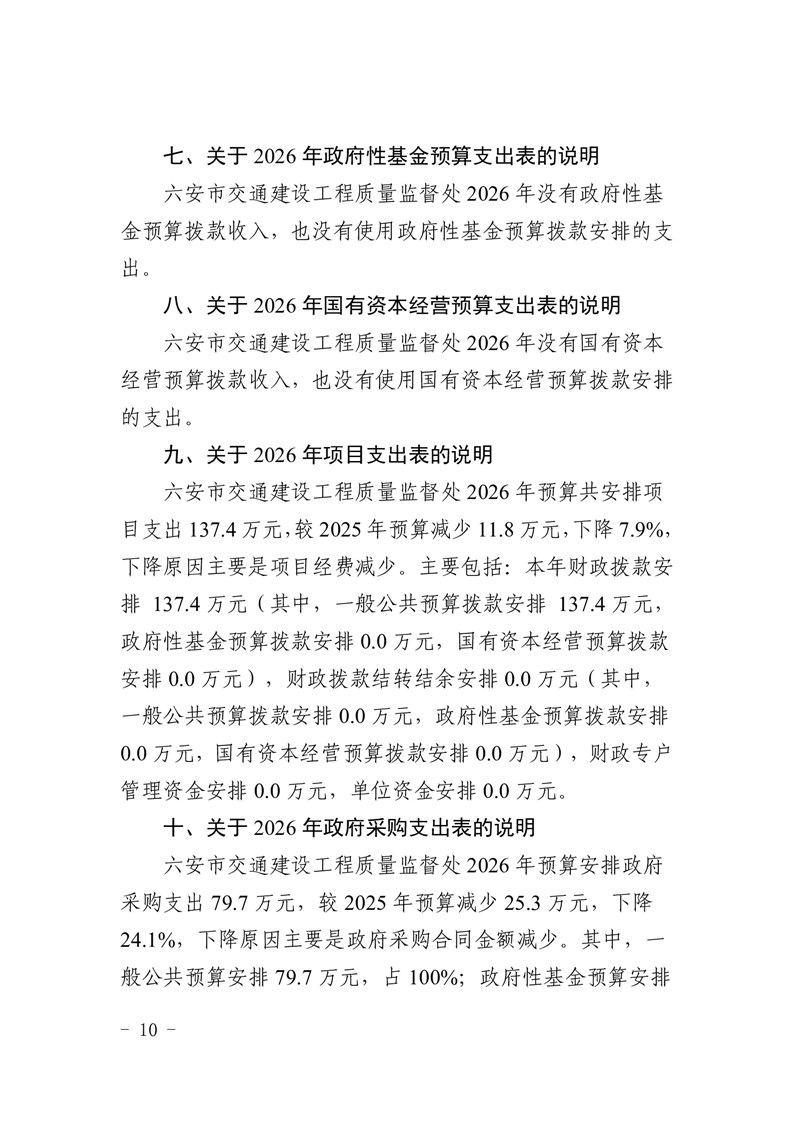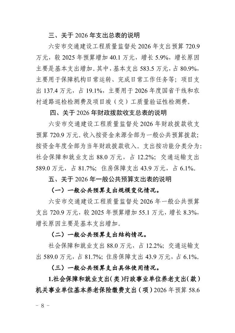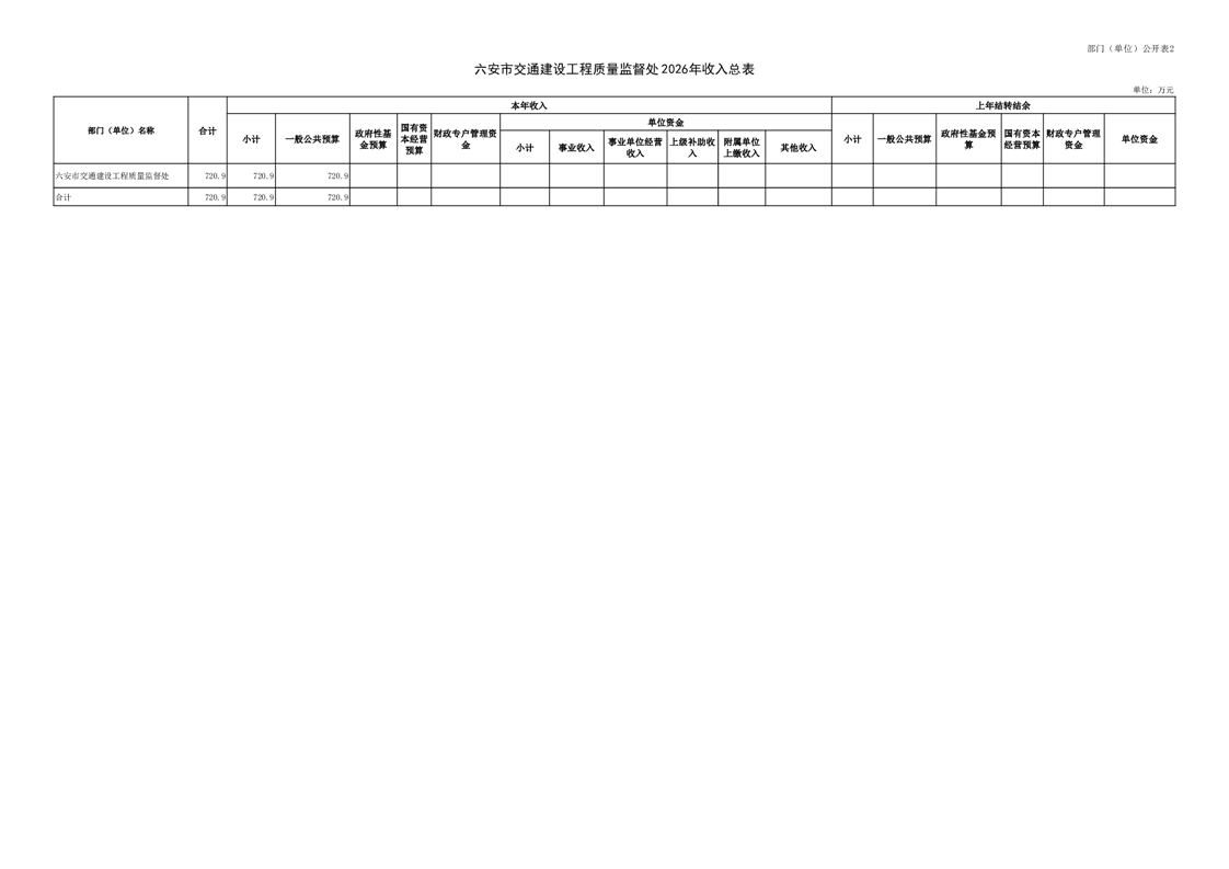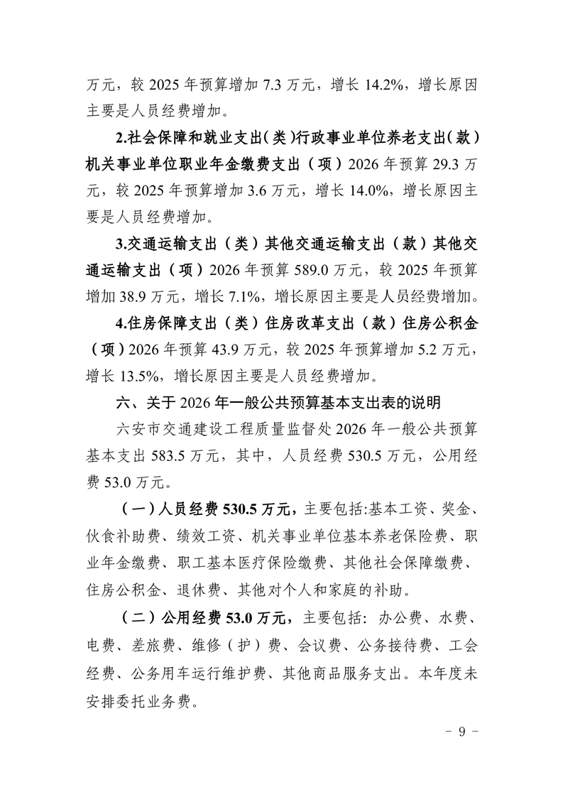 六安市交通建设工程质量监督处2026年单位预算