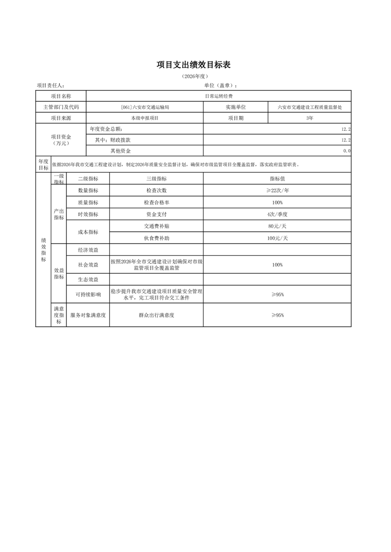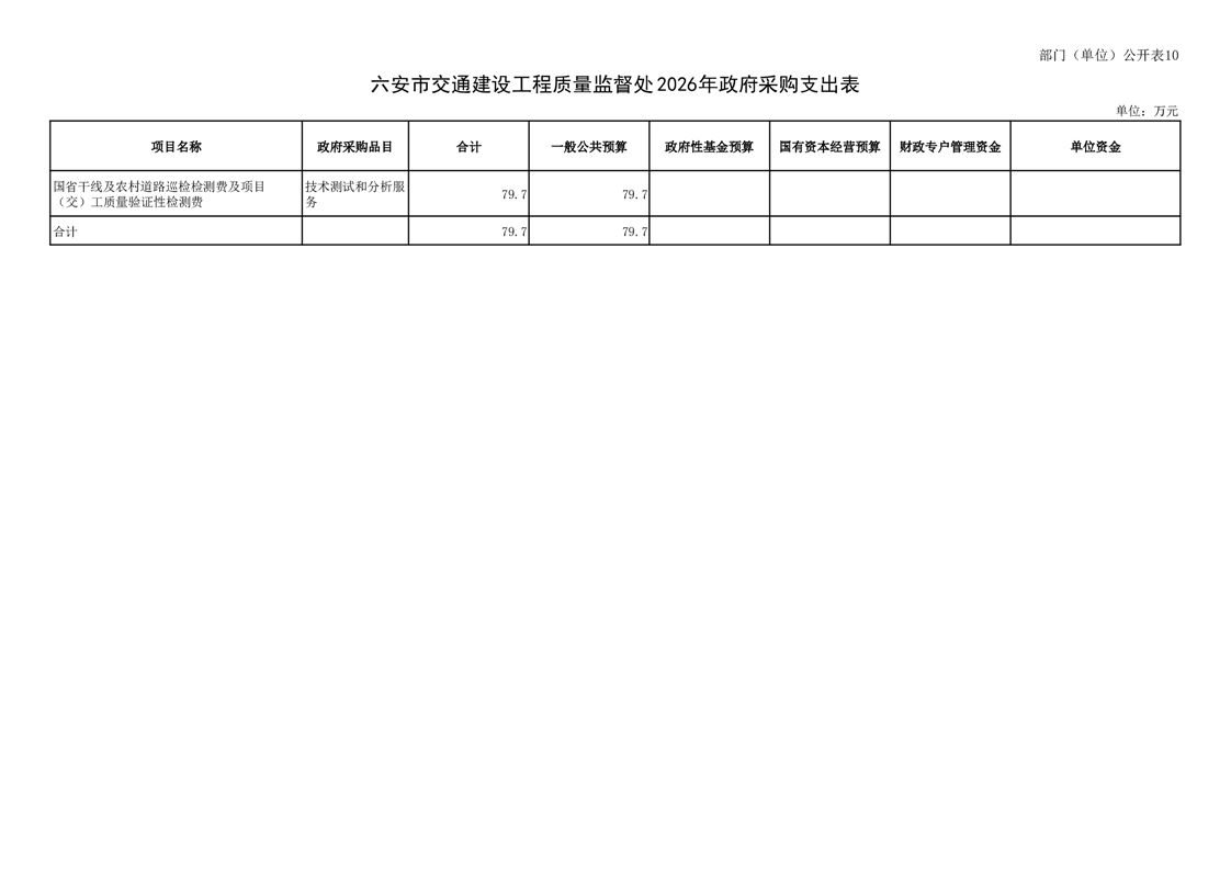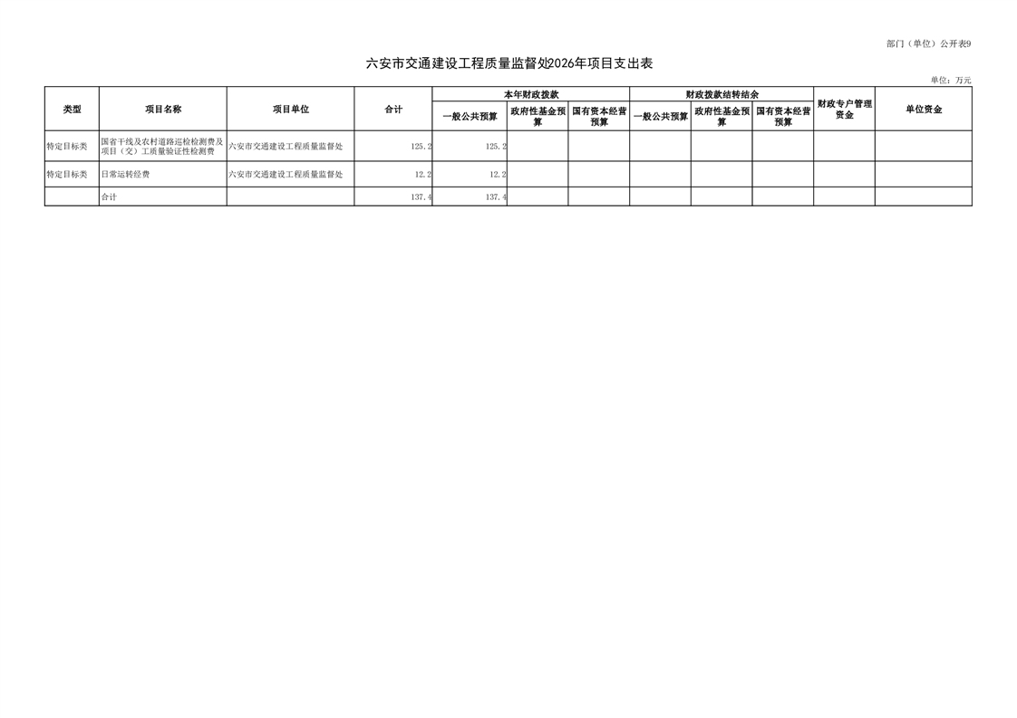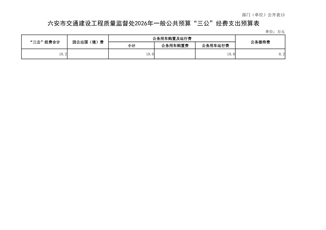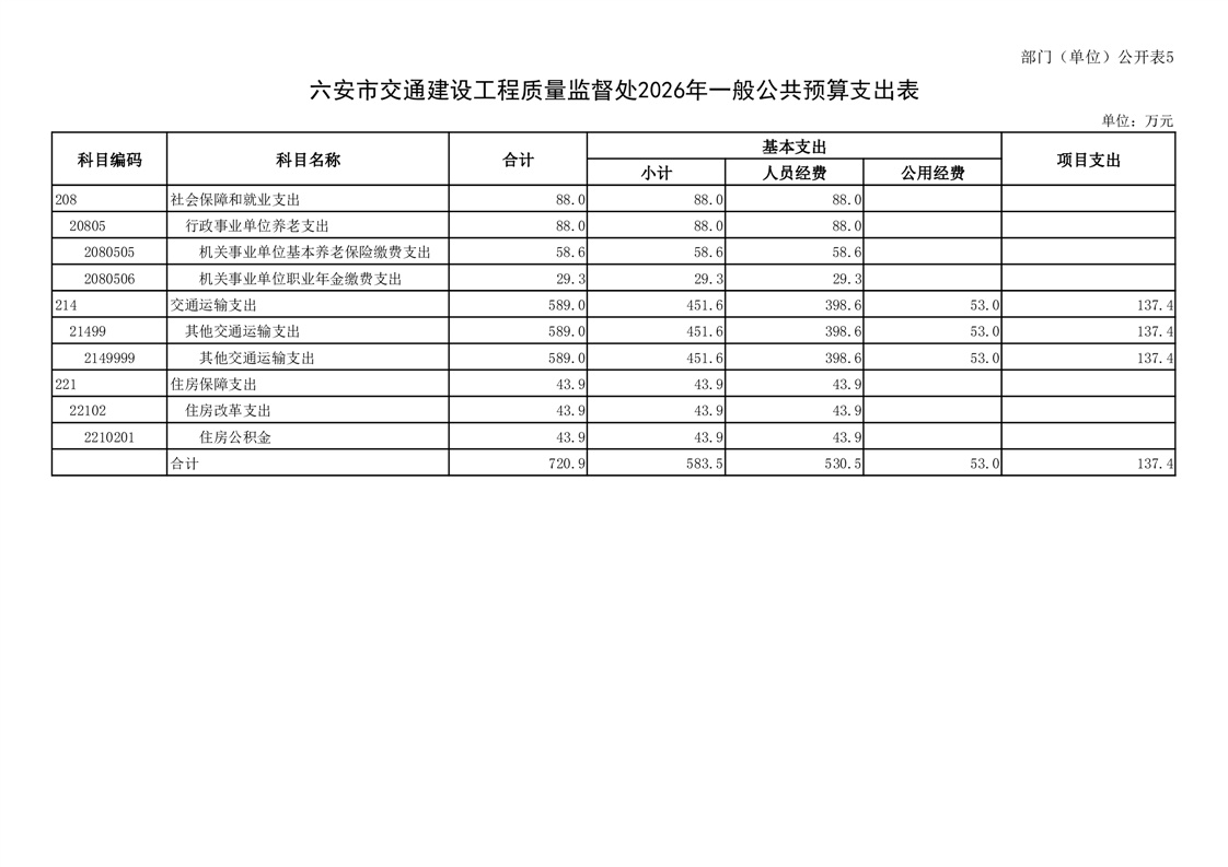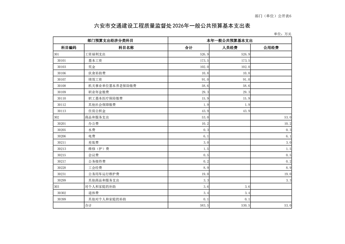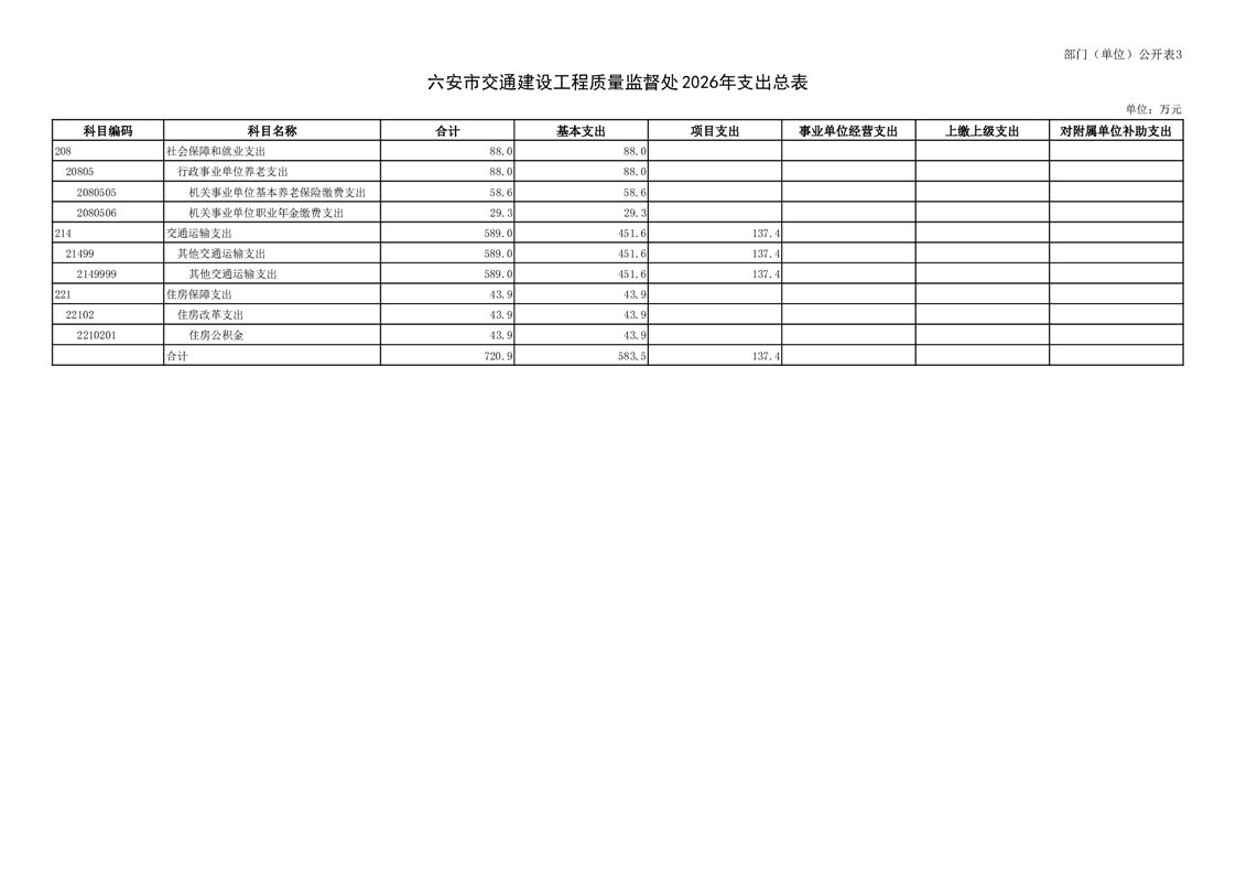 六安市交通建设工程质量监督处2026年单位预算