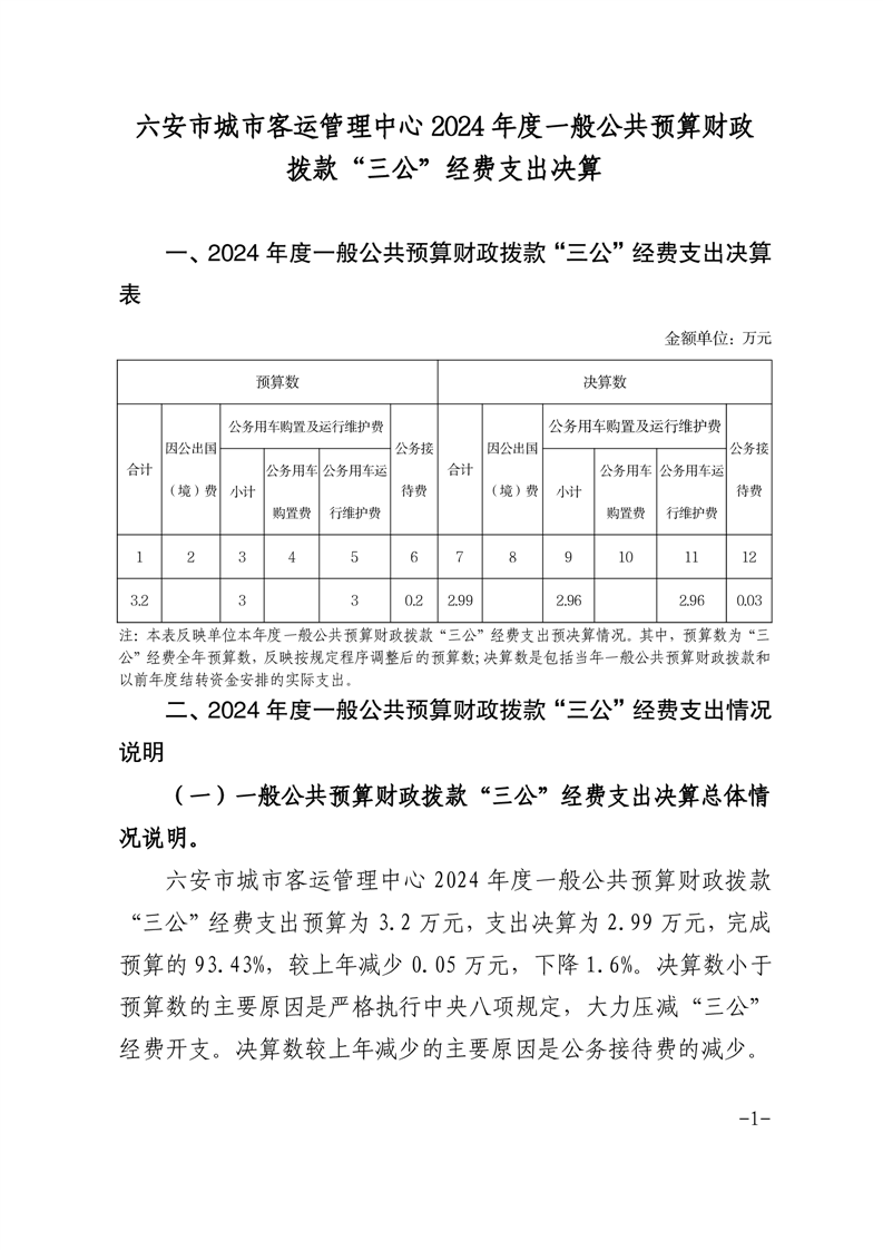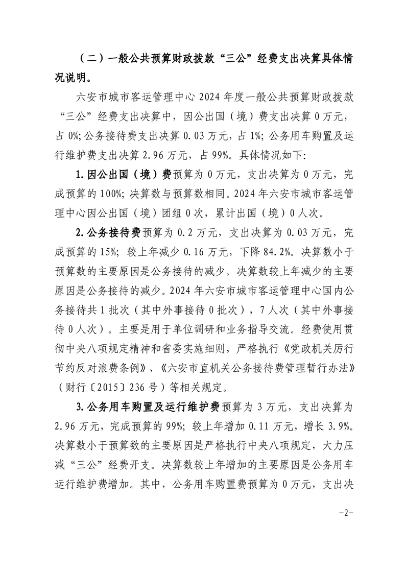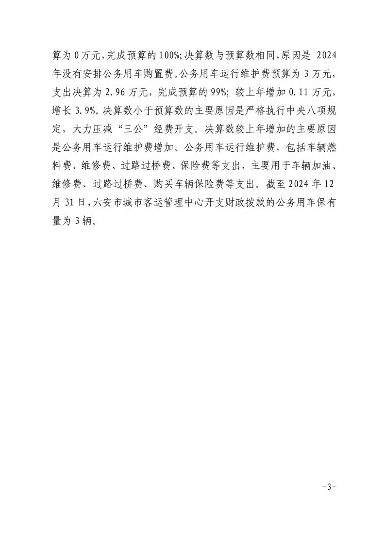 六安市城市客运管理中心2024年度一般公共预算财政拨款“三公”经费支出决算
