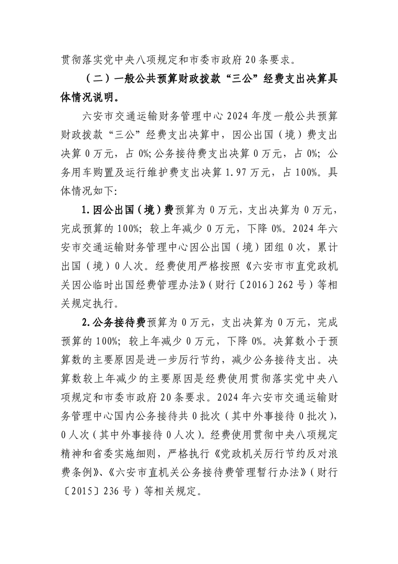 六安市交通运输财务管理中心 2024 年度一般公共预算财政拨款“三公”经费支出决算