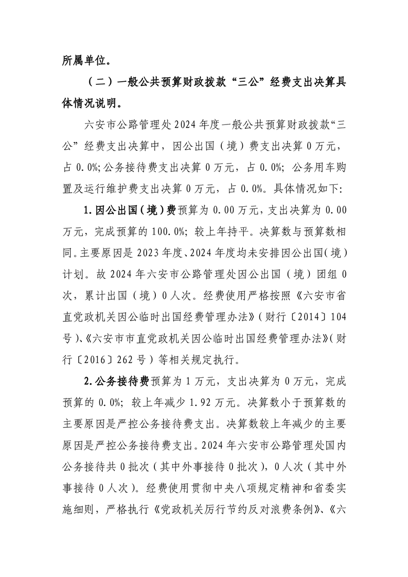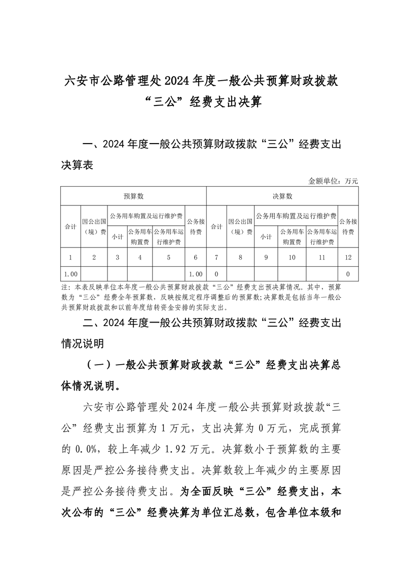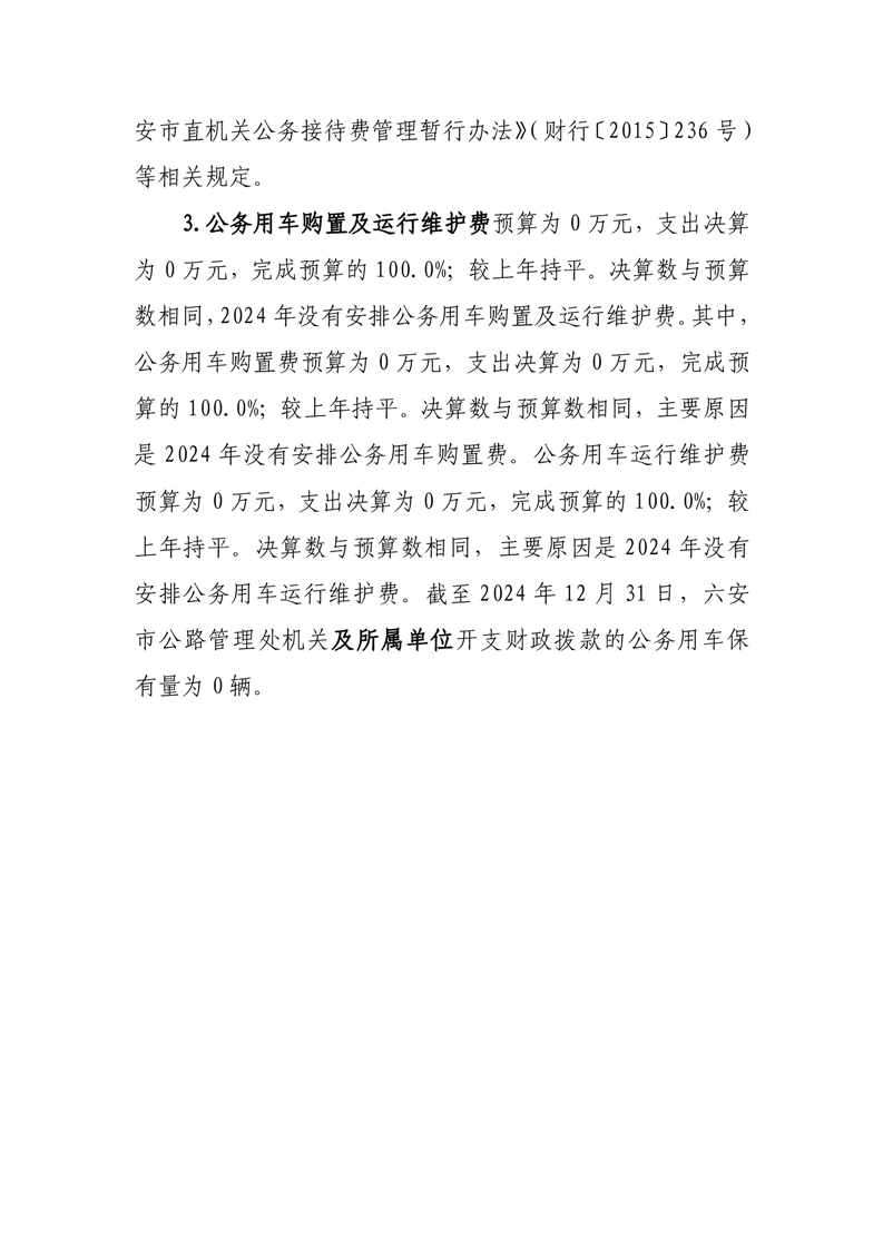 六安市公路管理处2024年度一般公共预算财政拨款“三公”经费支出决算