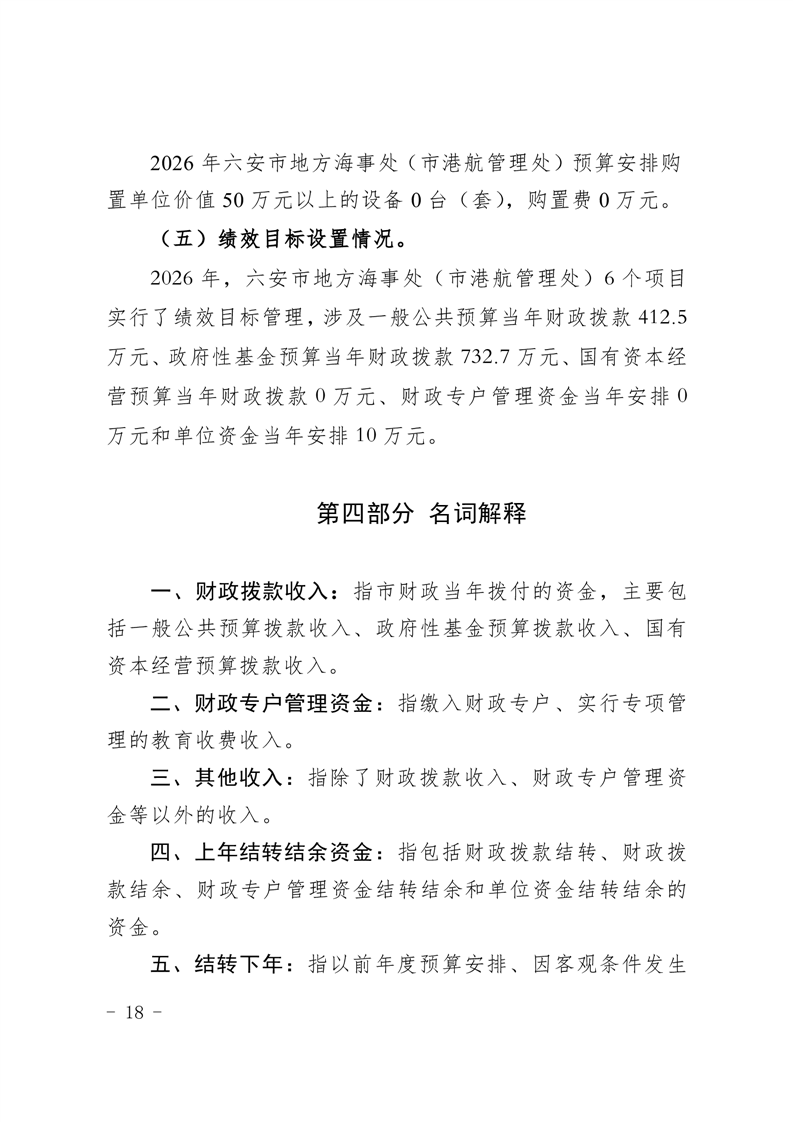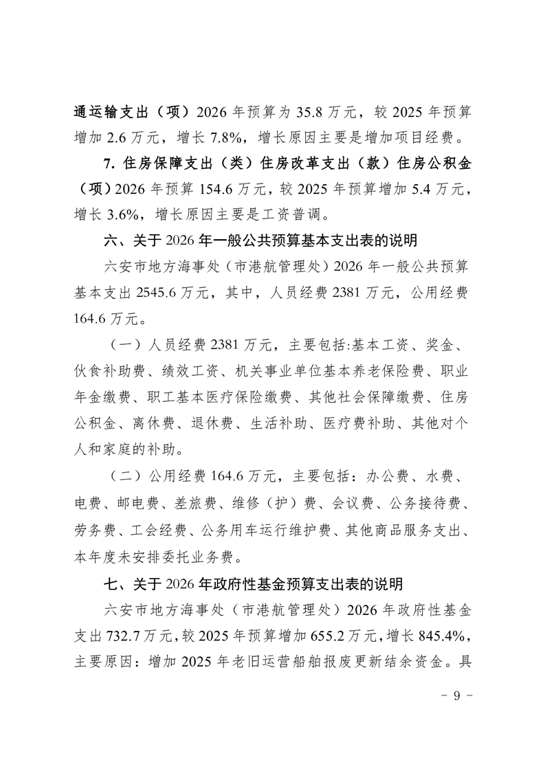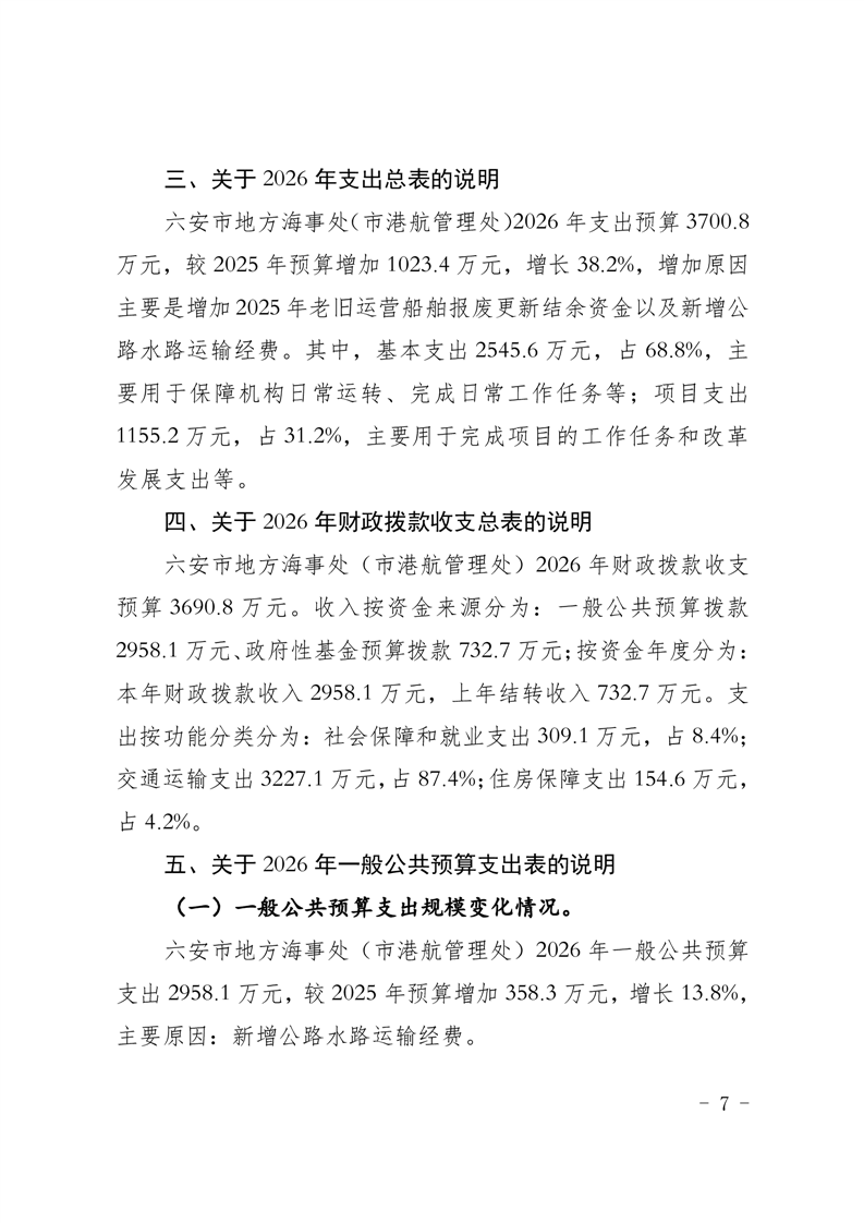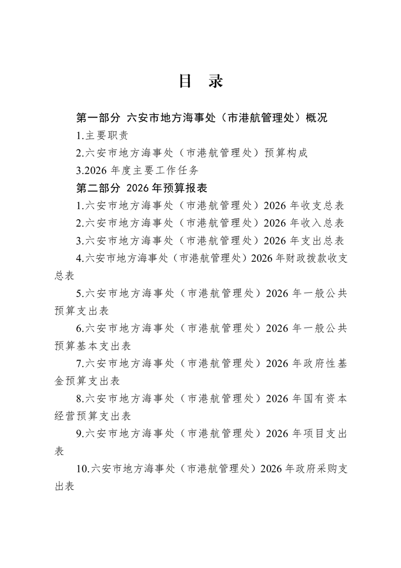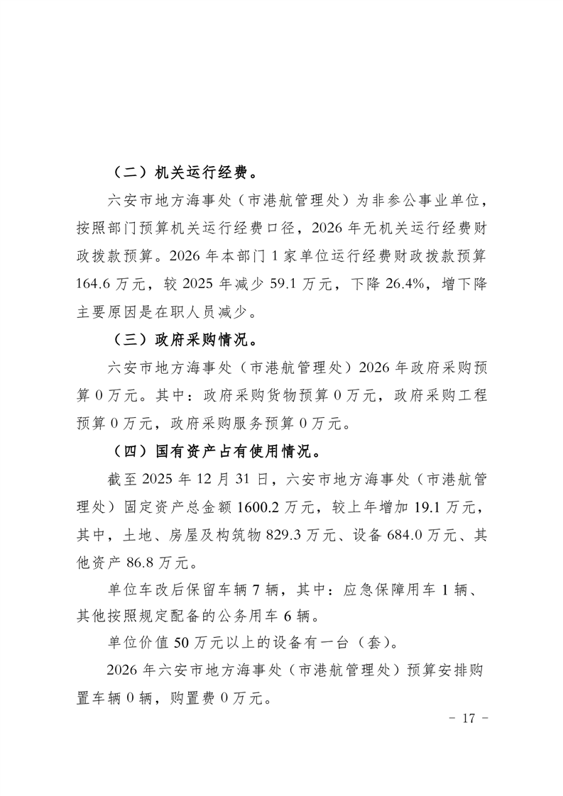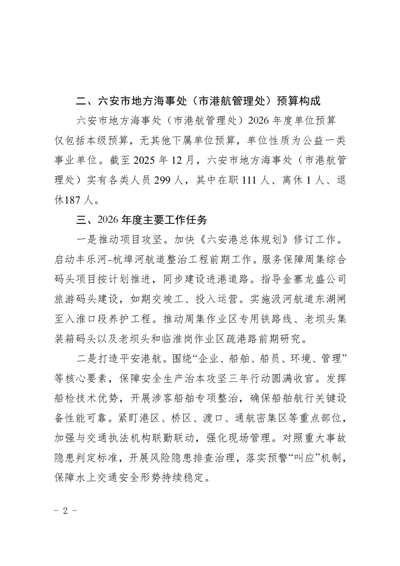 六安市地方海事处(市港航管理处)2026年单位预算