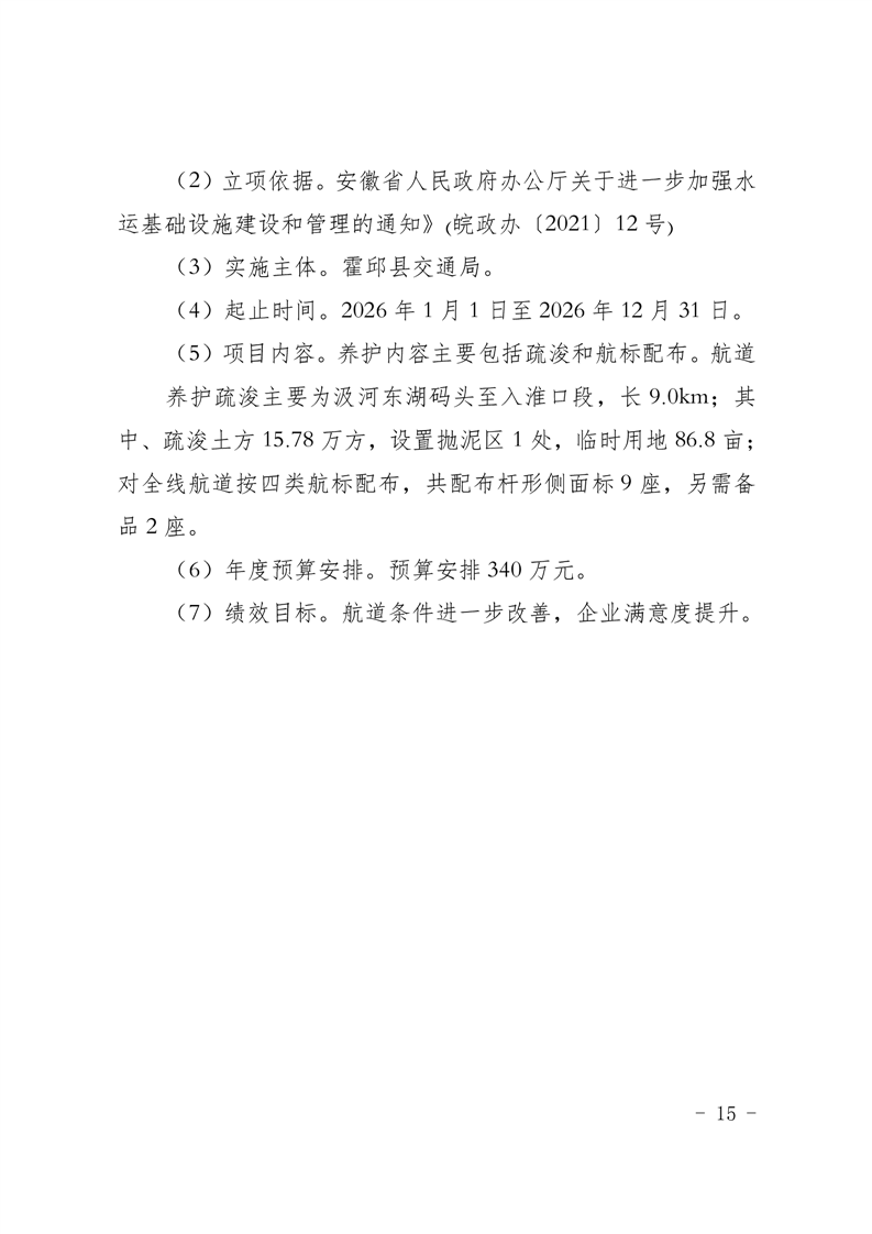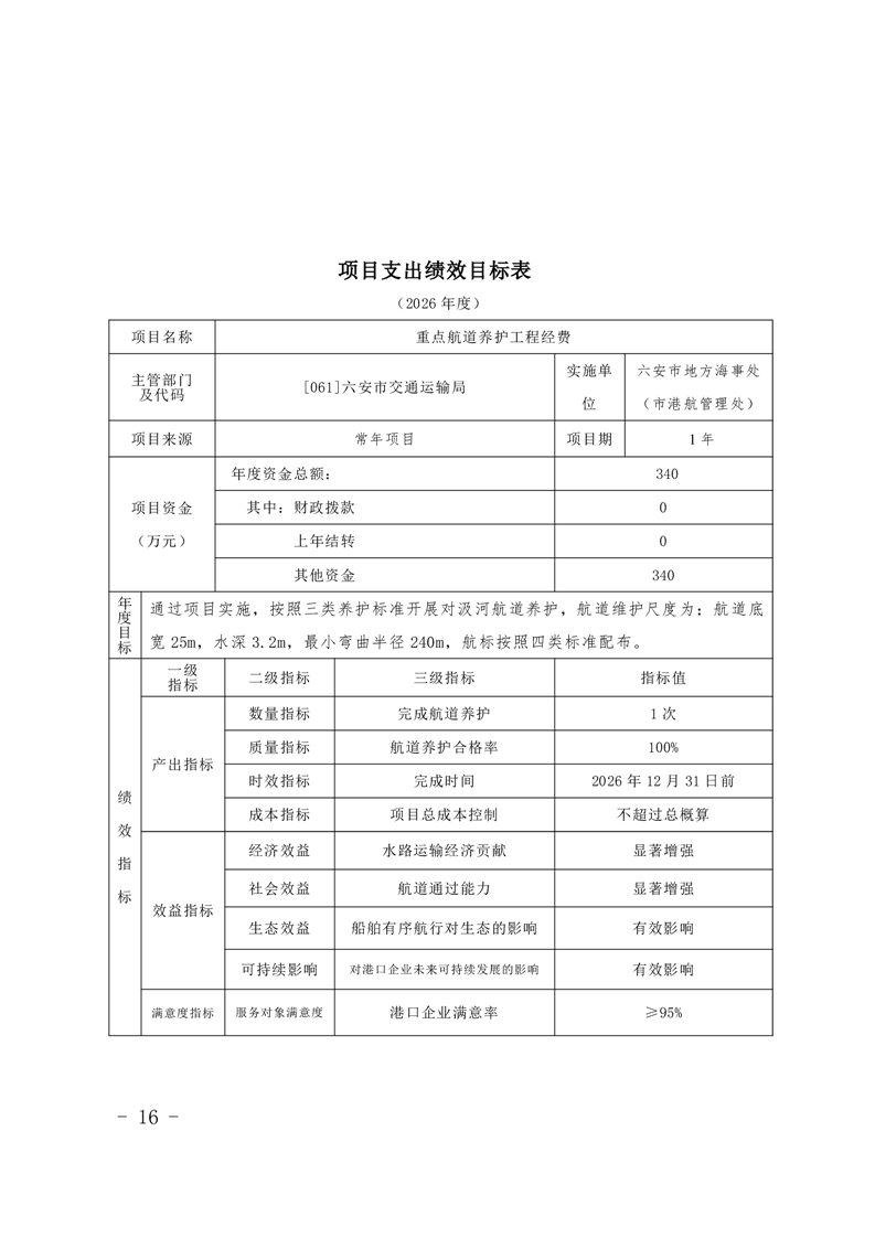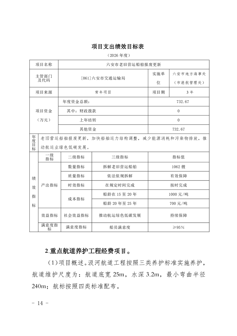 附件14.六安市地方海事处(市港航管理处)2026年项目支出绩效目标表.pdf