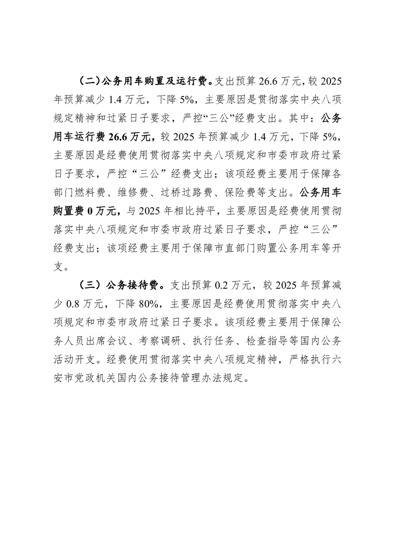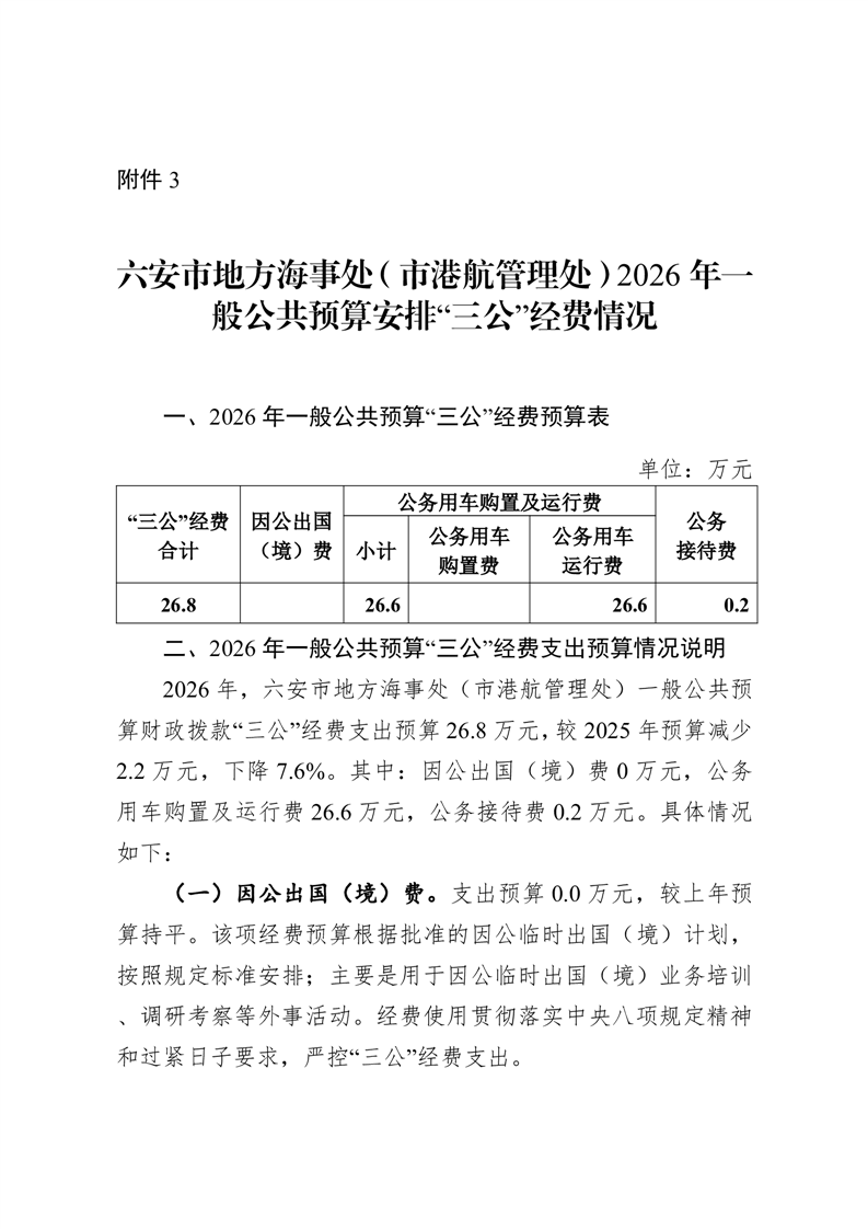 六安市地方海事处(市港航管理处)2026年一般公共预算安排“三公”经费情况