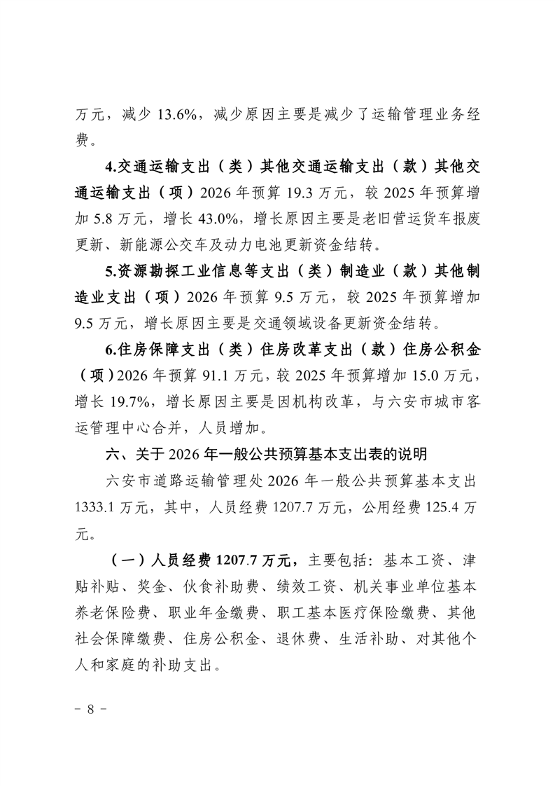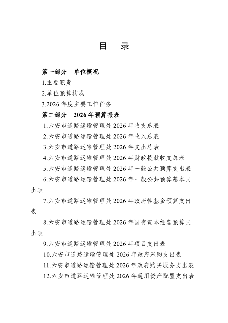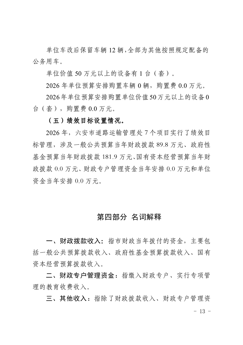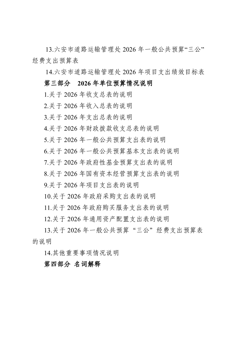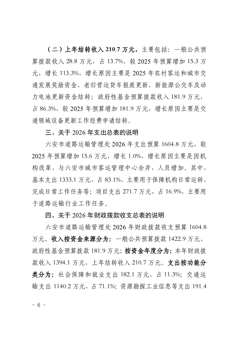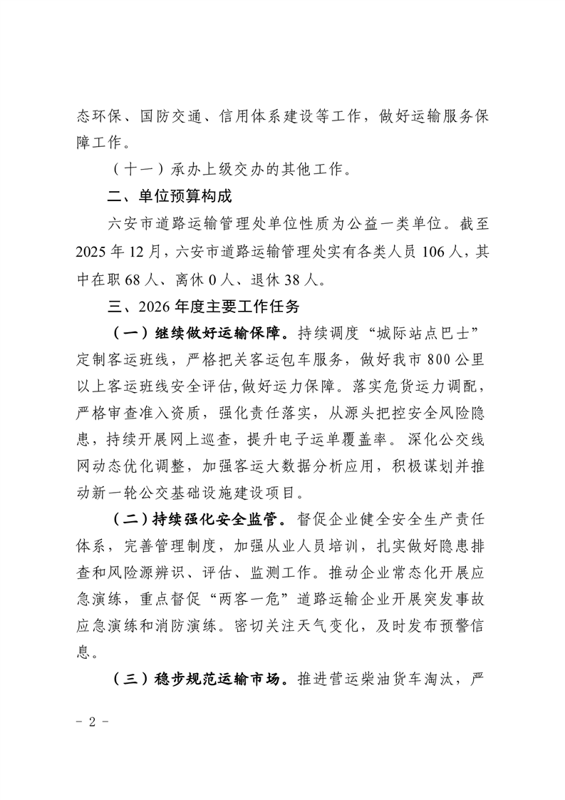 六安市道路运输管理处2026 年单位预算
