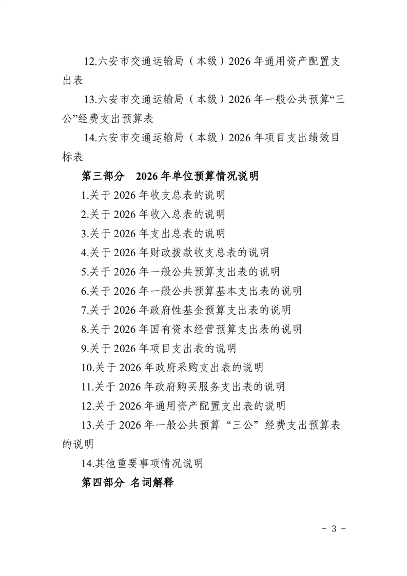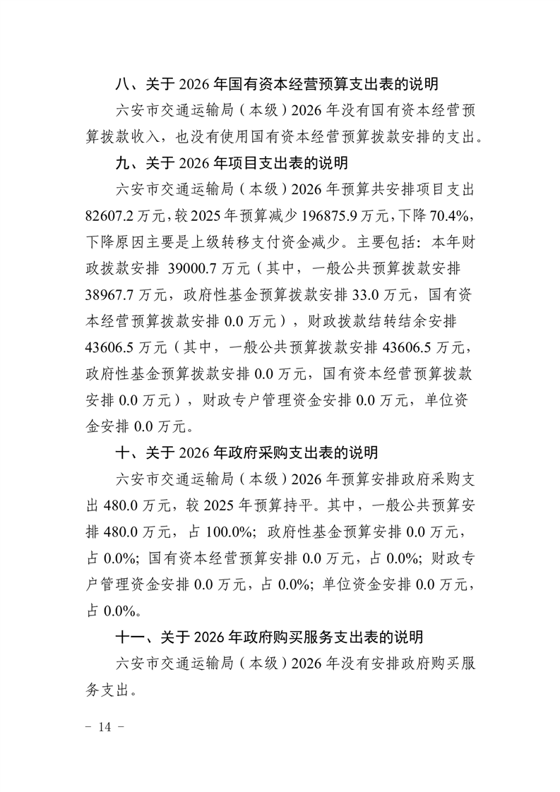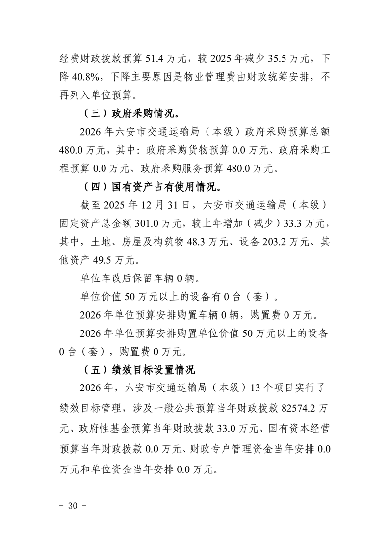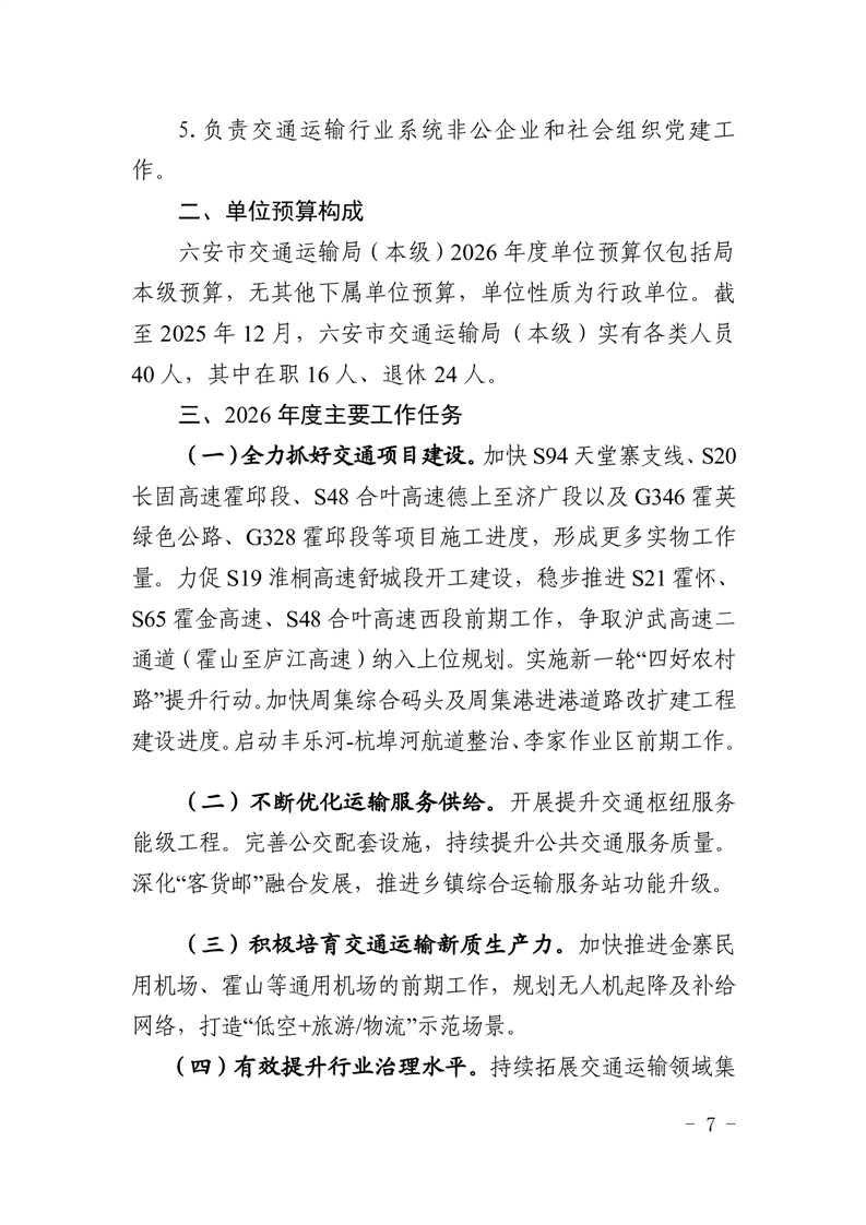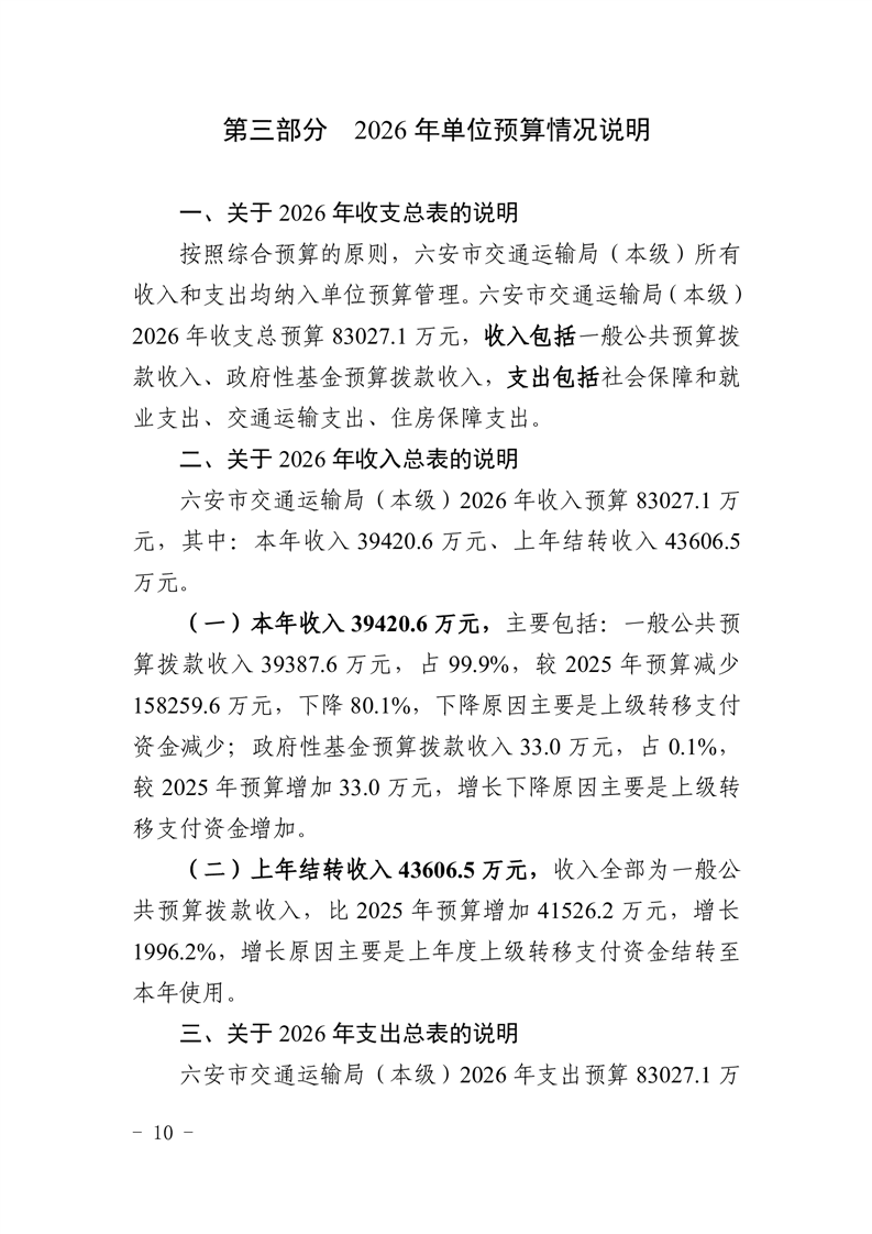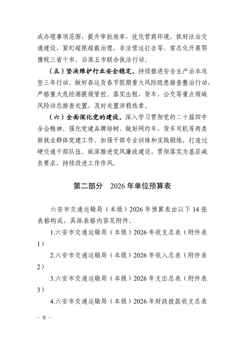 六安市交通运输局(本级)2026年单位预算