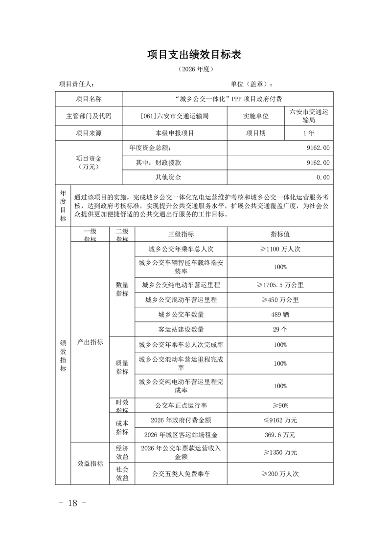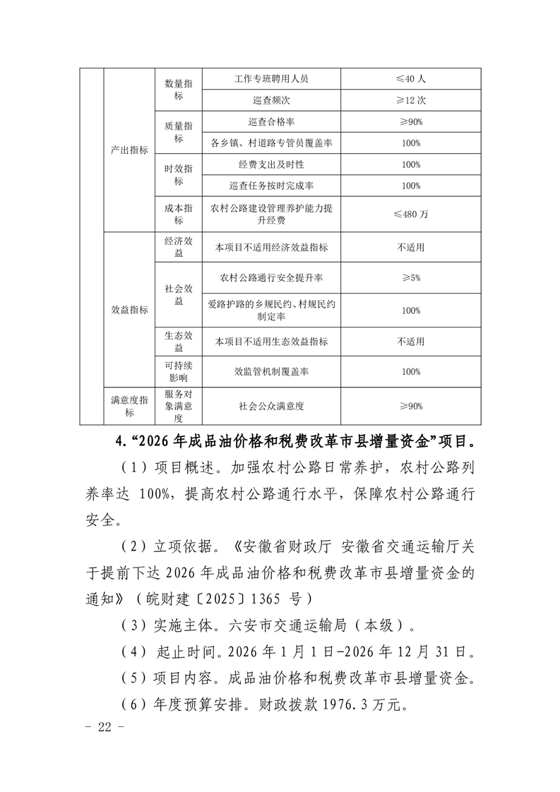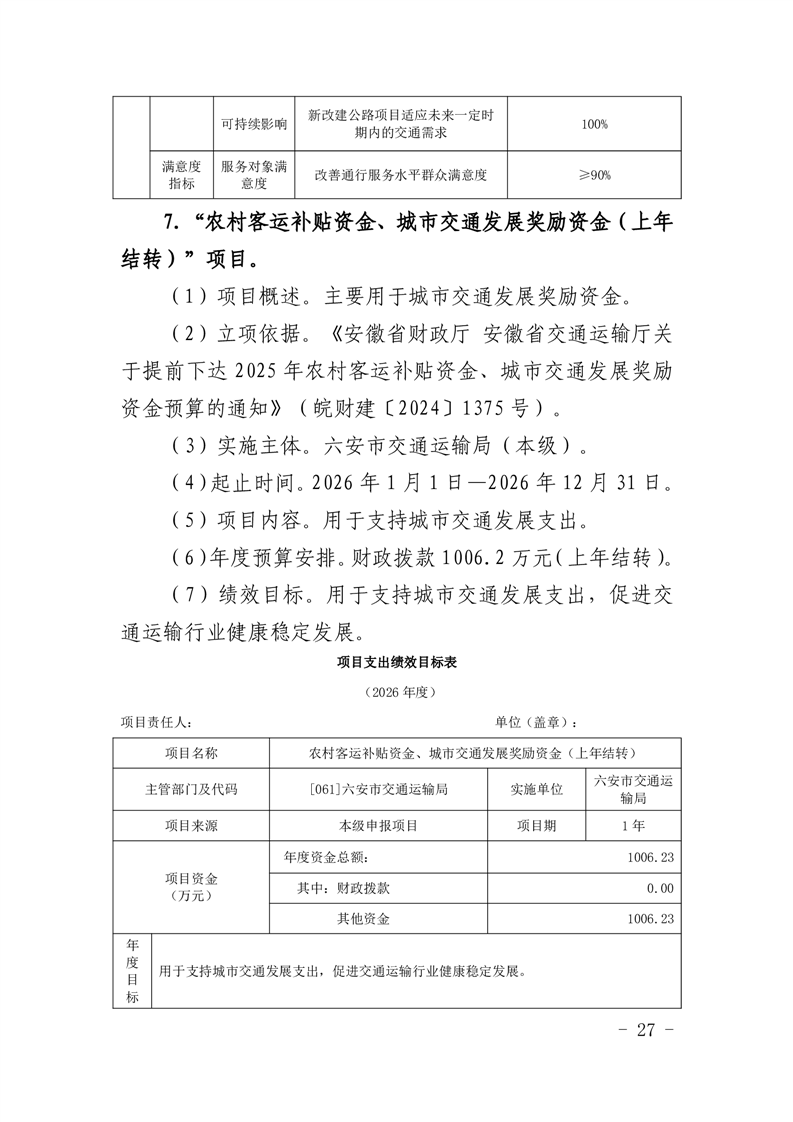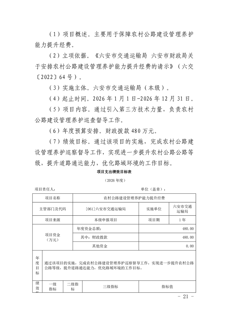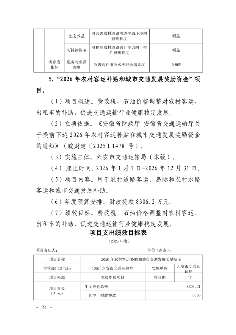 14.六安市交通运输局(本级)2026年项目支出绩效目标表(附件表14).pdf标签: