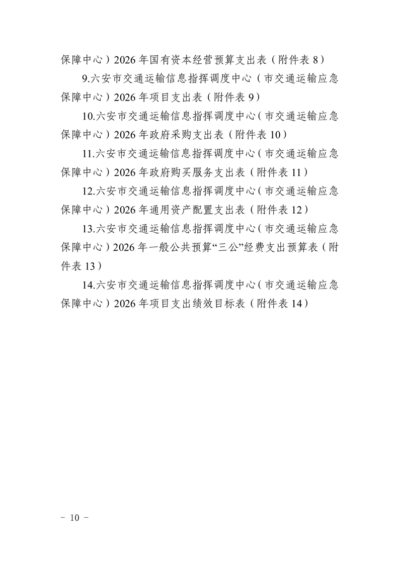 10.六安市交通运输信息指挥调度中心(市交通运输应急保障中心)2026年政府采购支出表(附件表10).pdf