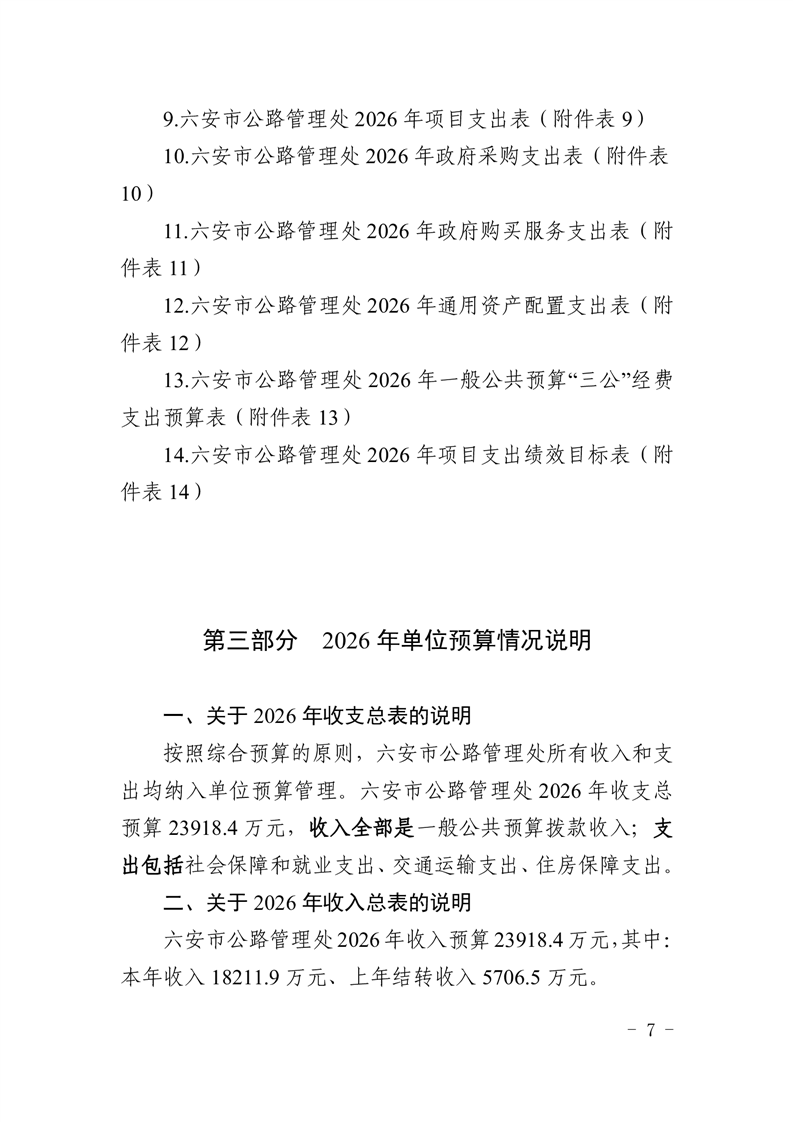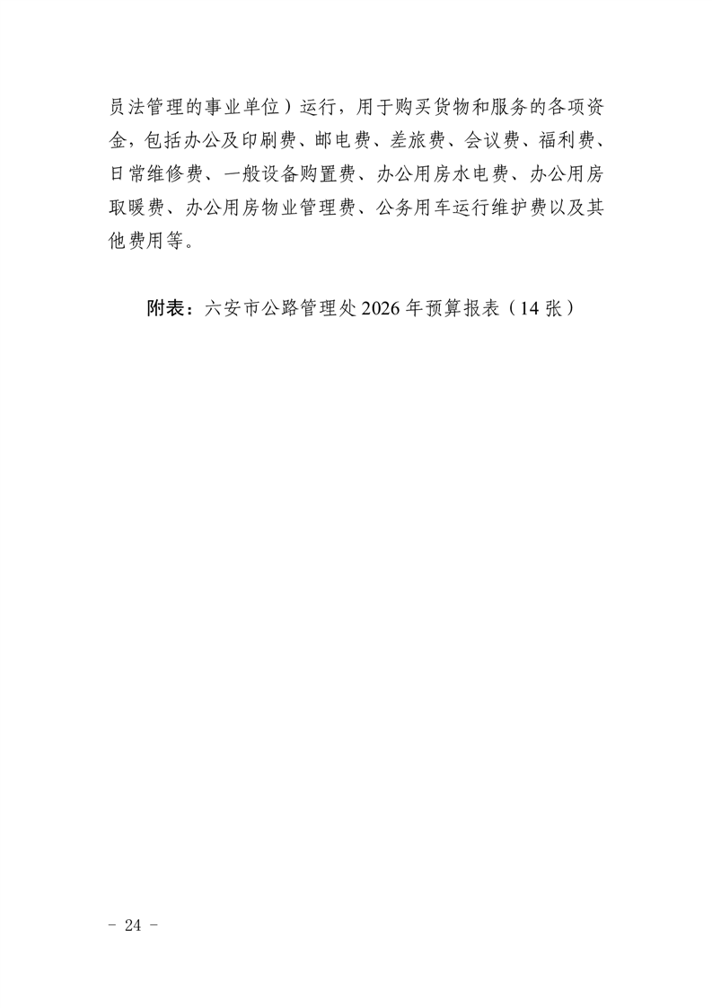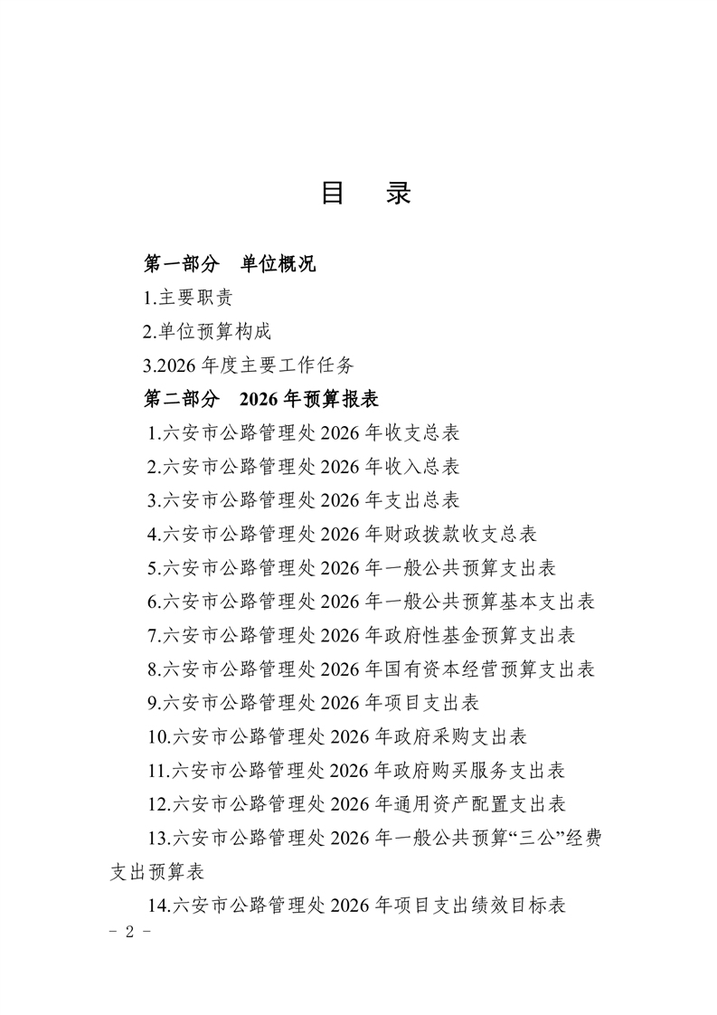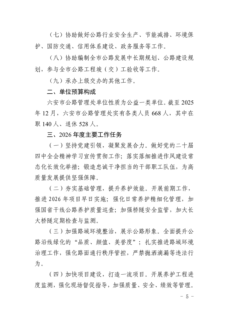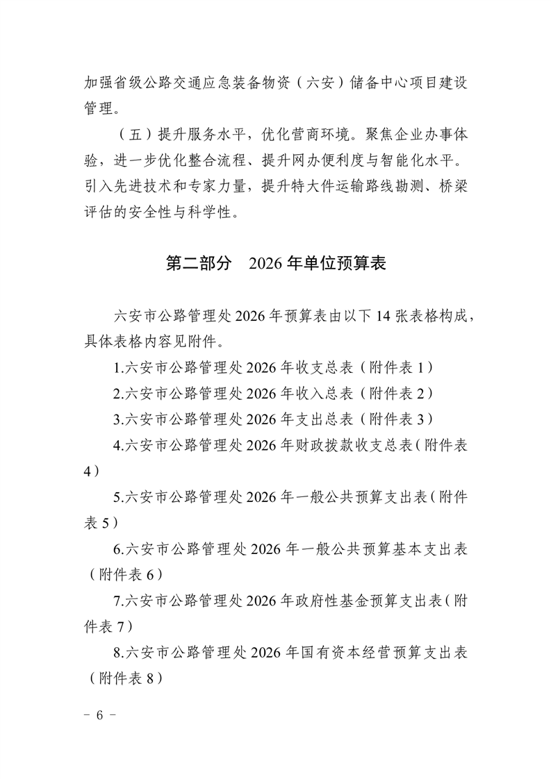 六安市公路管理处2026年单位预算