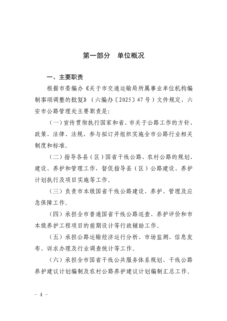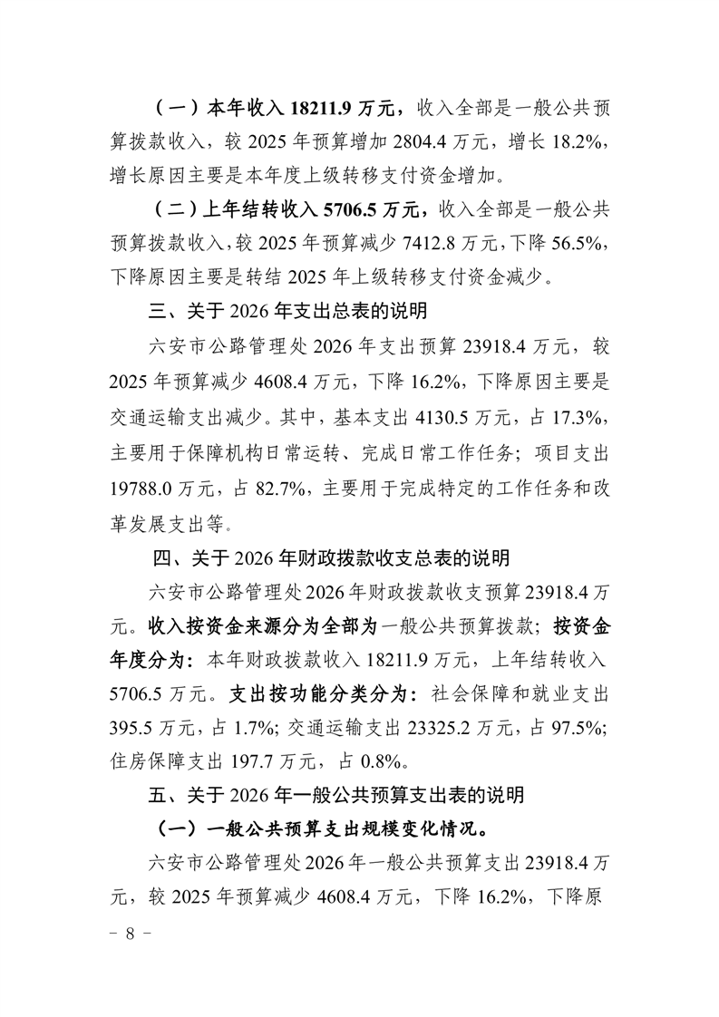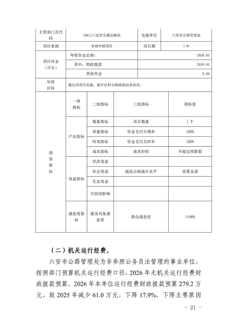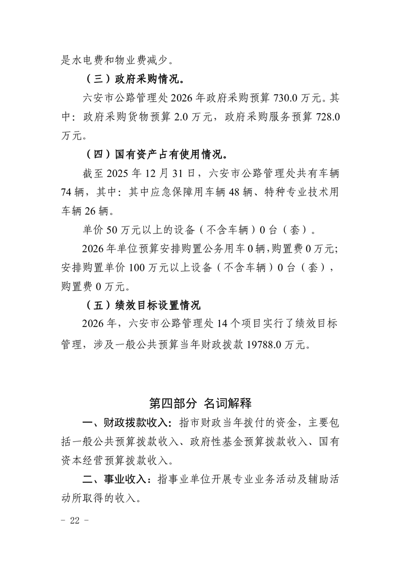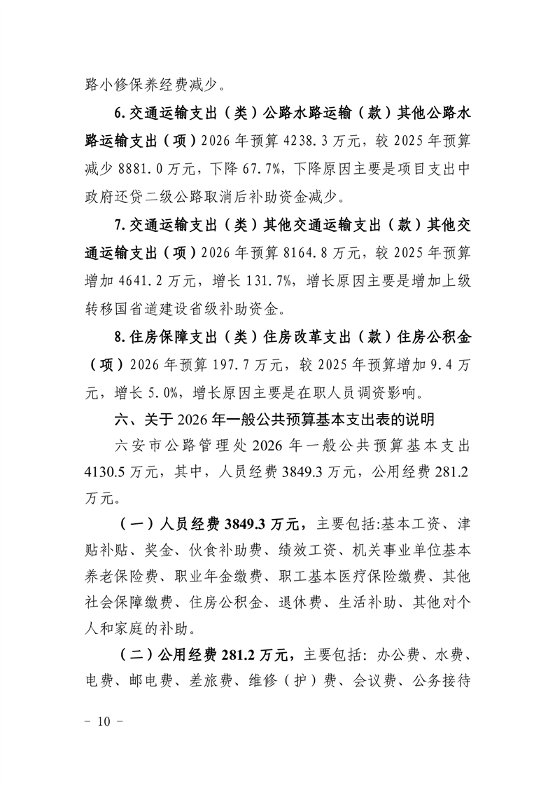 六安市公路管理处2026年单位预算