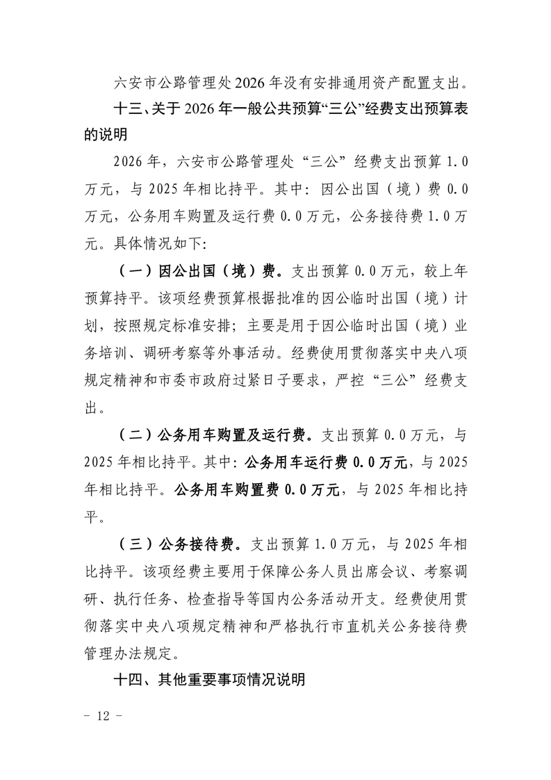 六安市公路管理处2026年通用资产配置支出表(附件表12).pdf