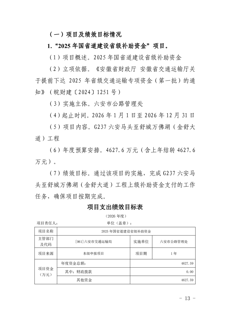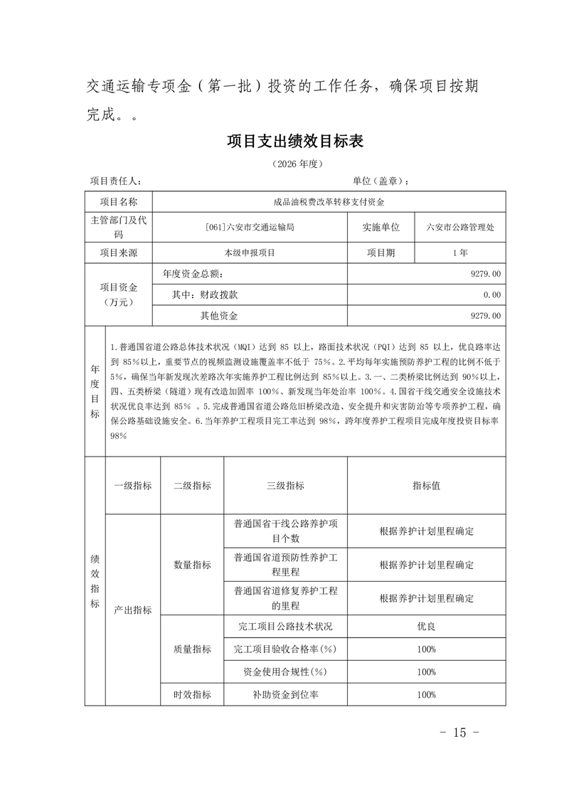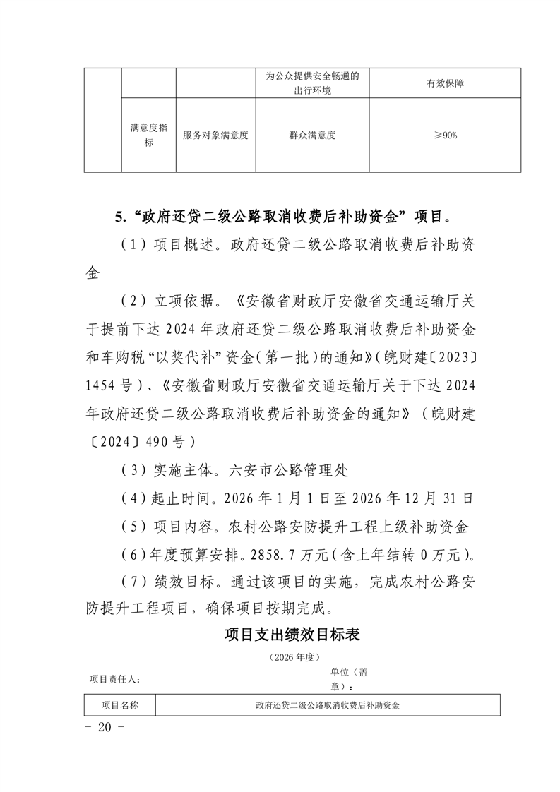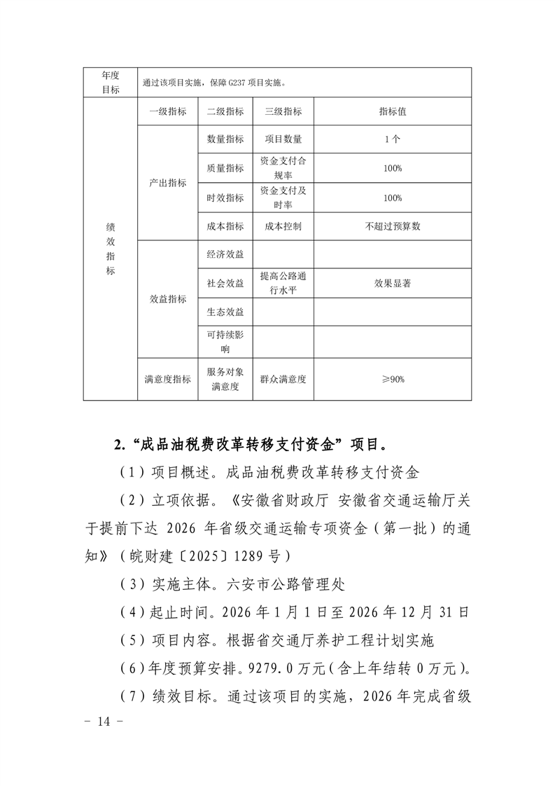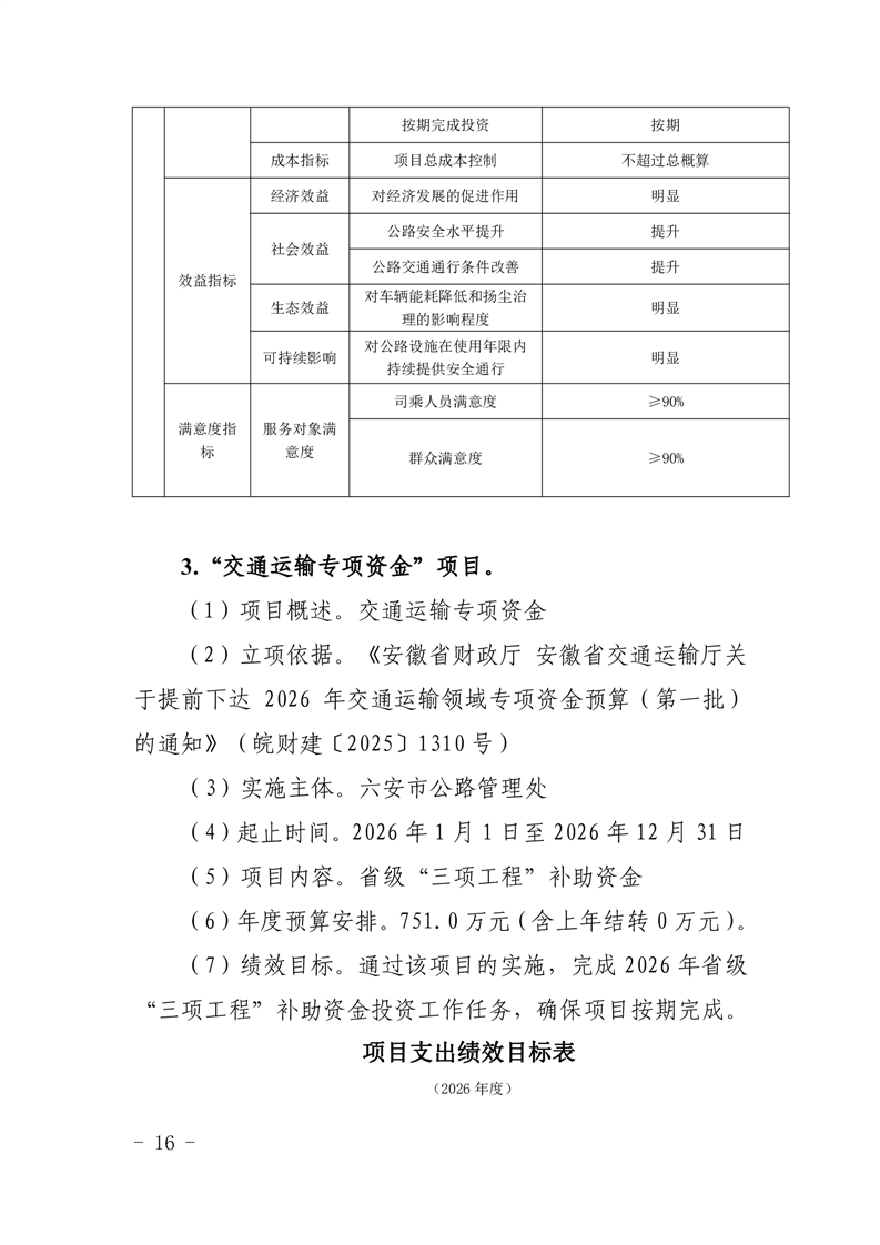 六安市公路管理处2026年项目支出绩效目标表(附件表14).rar标签:
