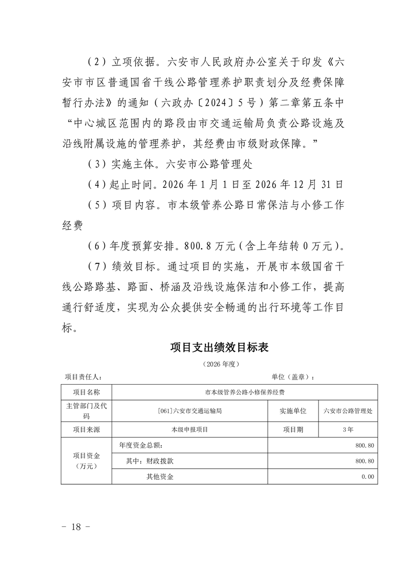 六安市公路管理处2026年项目支出表(附件表9).pdf