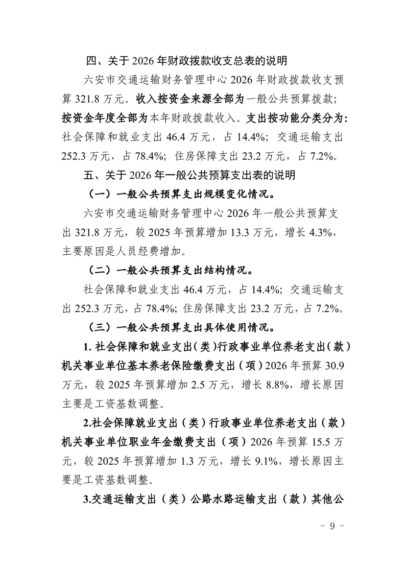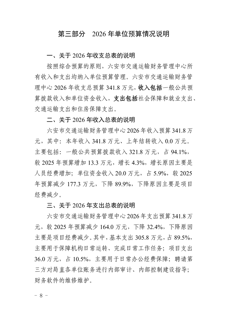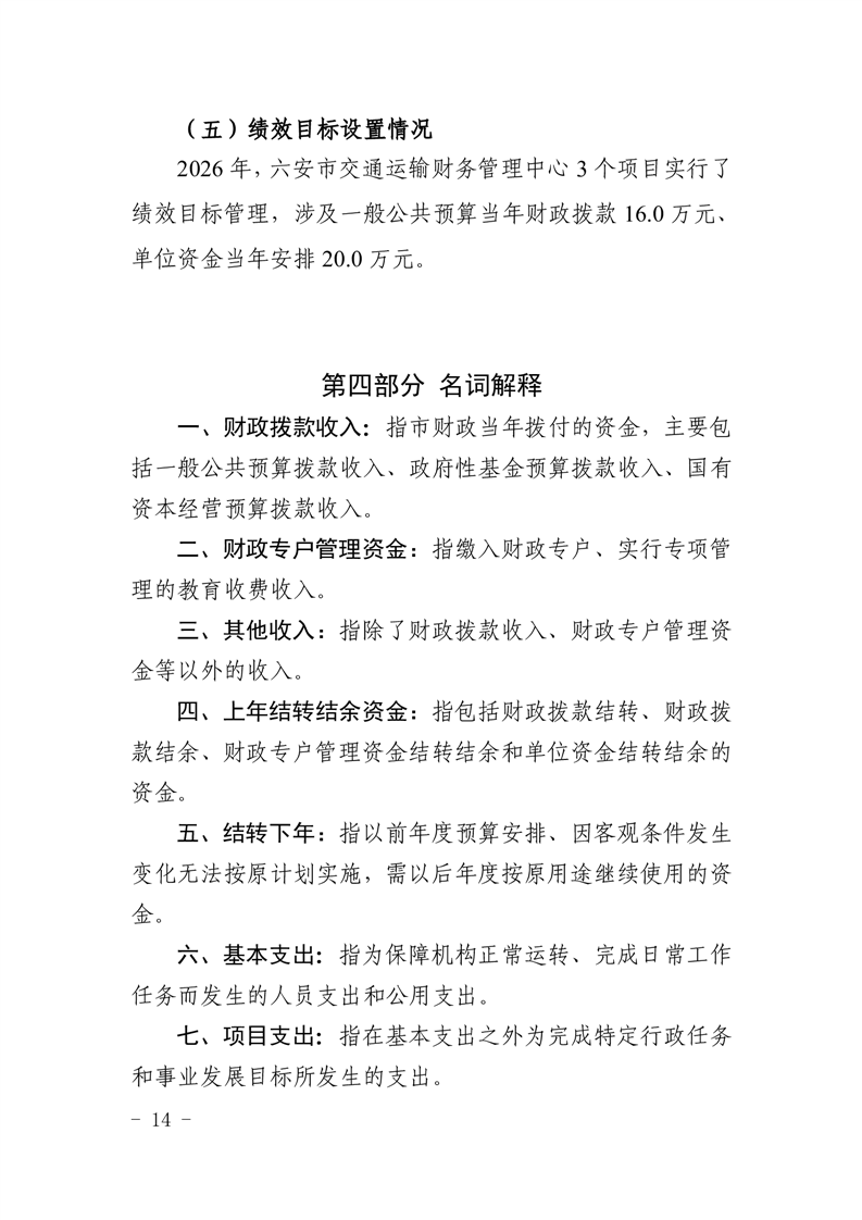 六安市交通运输财务管理中心2026年单位预算