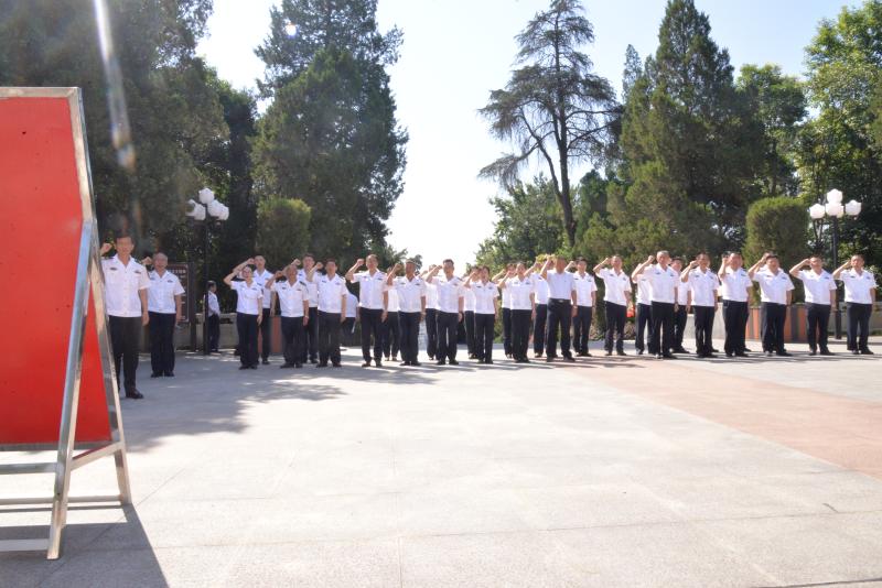 在金寨县红军广场,全处干部职工深情瞻仰烈士纪念碑,向革命烈士肃穆鞠躬、敬献花篮,向在战争中英勇逝去的革命烈士表达深切悼念和崇高敬意;面对鲜红的党旗,全体党员举起右手,声音嘹亮、气势恢宏的重温入党誓词,再次向党和人民作出庄严承诺。