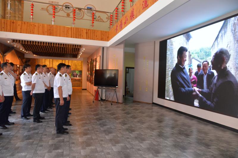在花石乡大湾村,全处干部职工认真观看习近平总书记考察调研金寨专题片和“追梦路上的大湾村”图片展,聆听感受习近平总书记对老区人民的亲切关爱之情;沿着习近平总书记当年的考察足迹,近距离回顾考察场景,了解大湾村精准扶贫取得的丰硕成果,亲眼见证国家乡村振兴战略实施以来大湾村的巨大变化。