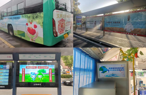 扩大公交宣传影响力。加强公益广告的维护管理工作,及时将老旧破损标语更换。在运营300余台公交车厢标识牌内均张贴文明创建公益广告,并在公交车载电视播放20多个主题公益广告宣传,实现对公交车文明创建内容的全覆盖,扮靓了公交车的“里子”、“面子”,让公交车辆成为流动的优美风景线。