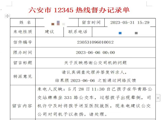 下午4时左右,许师傅接到了男孩父亲的感谢电话,称小孩现在已经转危为安了,幸得许师傅和热心乘客们的及时送治,不然晚来一步后果将不堪设想。随后男孩父亲通过政府统一热线平台对许师傅表示高度的赞扬。