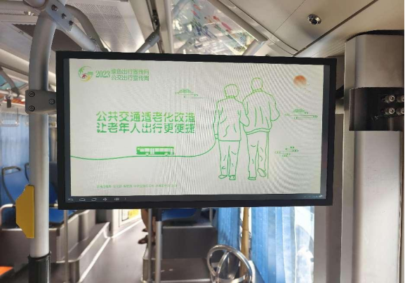 扩大公交宣传影响力。利用公交车载电视、智能公交站亭播放绿色出行公益广告视频,积极倡导全社会优先选择绿色出行方式;开展公交志愿者服务活动,向乘客发放各类宣传单页倡导绿色出行,为老幼病残孕等特殊群体及困难乘客提供服务,引导市民文明乘车。
