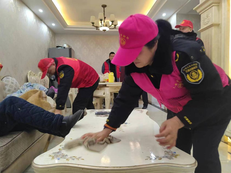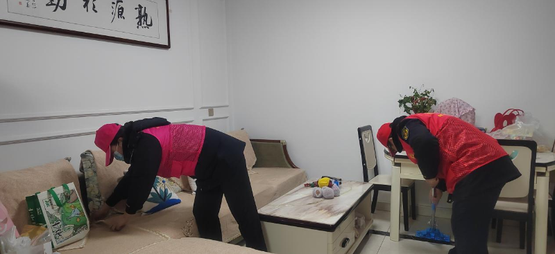 ▲志愿者帮助空巢老人打扫卫生、整理物品