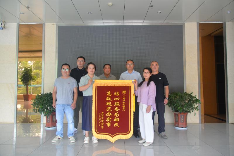 近日,霍邱县第二航运公司相关负责人专程将一面镌刻“贴心服务为船民 高效规范办实事”的锦旗送到六安市地方海事处,对海事工作人员“白加黑连轴转、5+2无缝隙”服务船舶拆解工作表示由衷感谢。