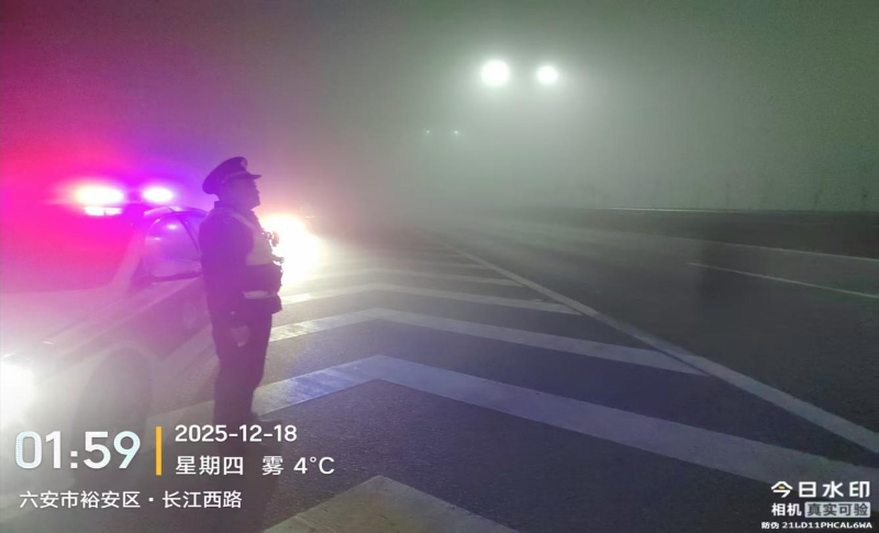 12月17日夜间至18日上午,一场持续近十小时的大雾侵袭六安,全市多条主干道出现能见度不足200米的大雾天气,部分路段能见度甚至低于50米,给道路安全带来严峻挑战。为最大限度降低恶劣天气对道路通行影响,防范交通事故发生,六安市交通执法支队路面治超巡查大队迅速启动特殊天气应急预案,全员参与,昼夜坚守,在大雾弥漫中筑起一道坚实的“安全屏障”。