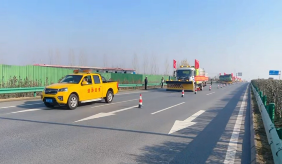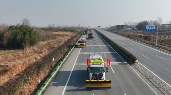演练以“实战化、标准化、高效化”为原则,紧扣实战标准,全面检验预案落地、设备调度与多部门协同能力。现场共集结12台铲雪车、3台撒布机、3辆巡逻车,30余名参演人员。指挥员指令下达后,工作人员迅速布设锥桶封闭车道、设置安全作业区。随后,巡逻车领航开道,铲雪车交错梯队除雪,撒布机紧随撒布融雪剂,巡逻车与警车护尾护航,车队有序推进,各环节衔接紧密默契,展现出高效处置能力。