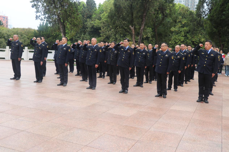 活动现场,松柏苍翠,庄严肃穆。全体人员着装整齐,怀着对革命先烈无限的缅怀与敬仰,面向烈士纪念碑整齐列队、静立默哀、敬献花篮,告慰先烈忠魂,缅怀先烈革命精神。重温入党誓词,铮铮誓言响彻陵园,彰显了交通执法人不忘初心、勇担使命的坚定信念。