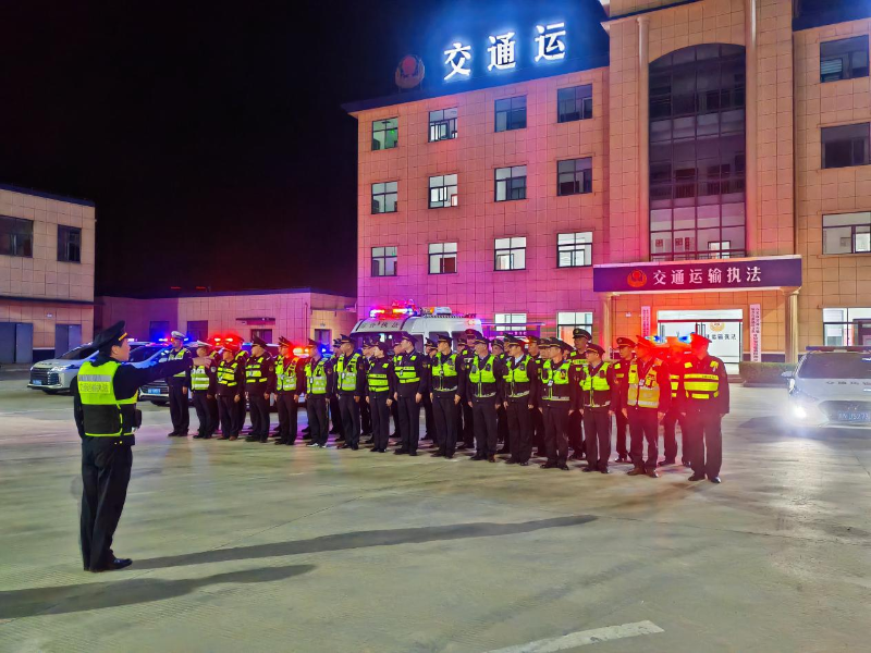 仪式现场灯火通明,执法人员身着统一制服、列队整齐,展现出交通执法队伍纪律严明、作风过硬的良好形象。本次启动仪式共出动交通执法人员50余人次、公安交警4名、执法车辆20余台,三省十市相关单位执法力量齐聚,彰显出联合治超的坚定决心与强大合力。
