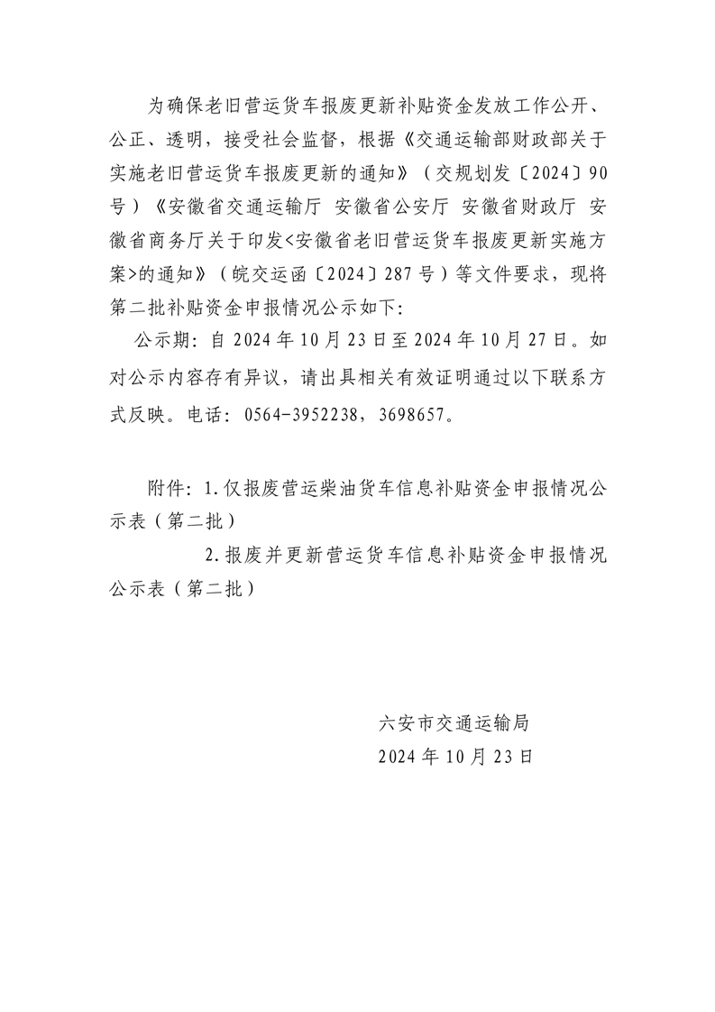 | 报废并更新营运货车信息补贴资金申报情况公示表(第二批) | ||||||||||||||||||||||