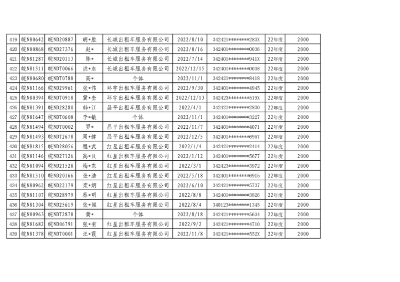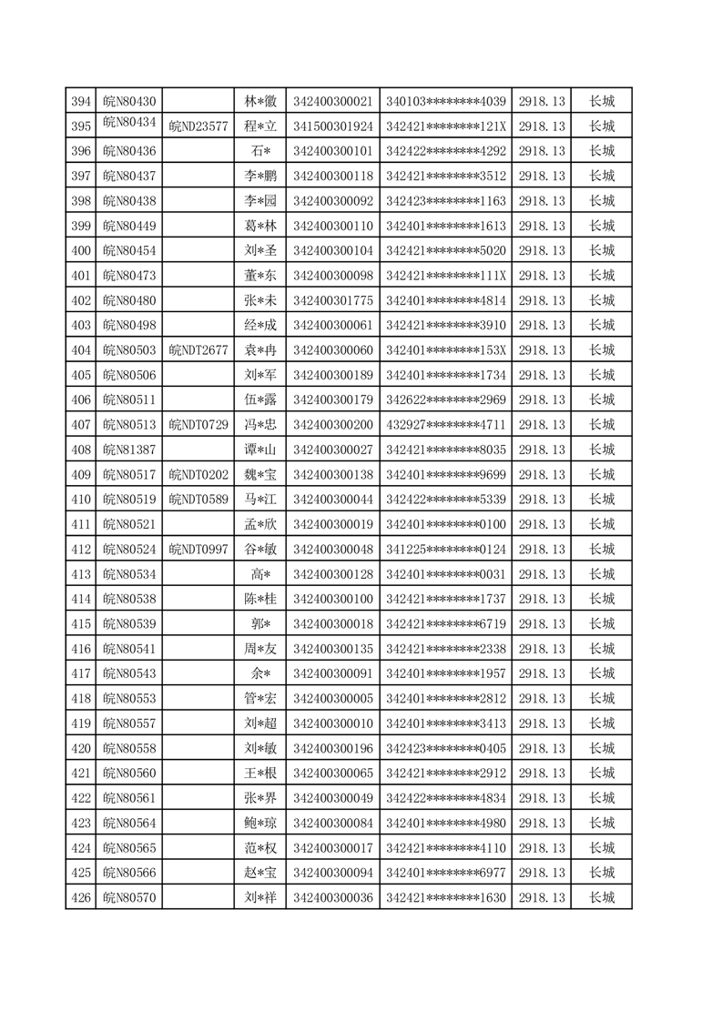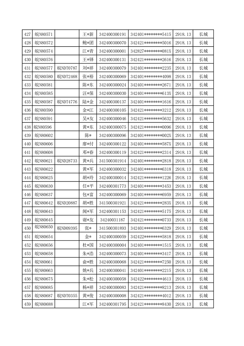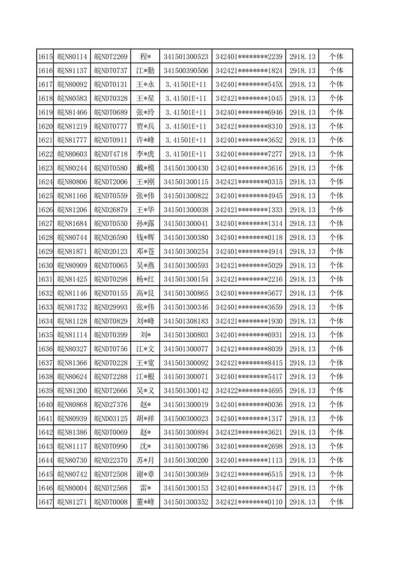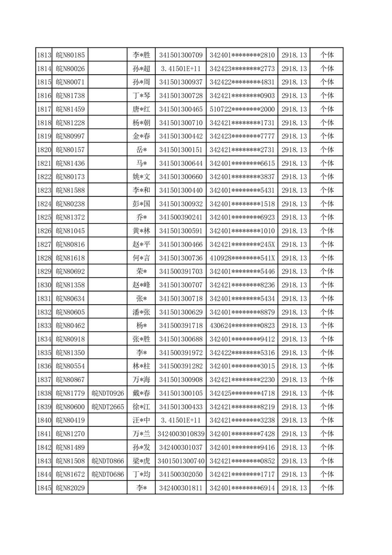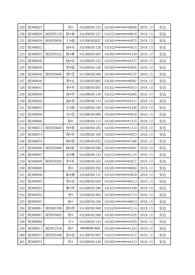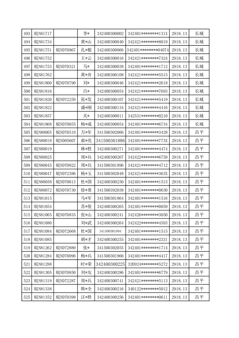 《六安城区2024年度出租汽车城市交通发展奖励资金发放信息表》