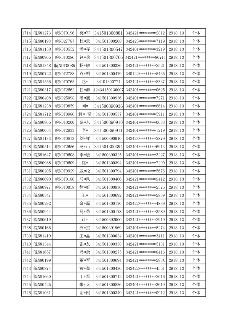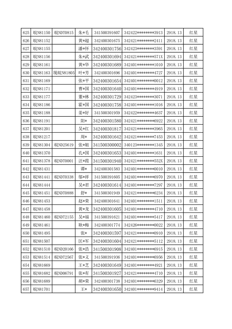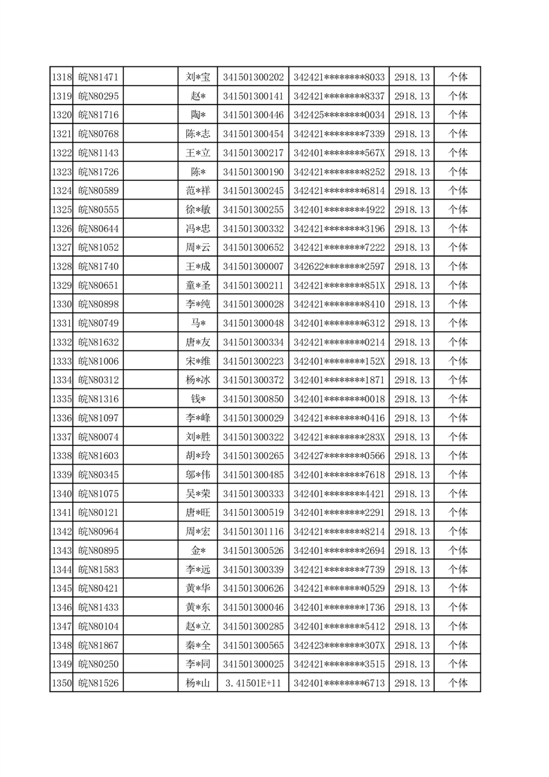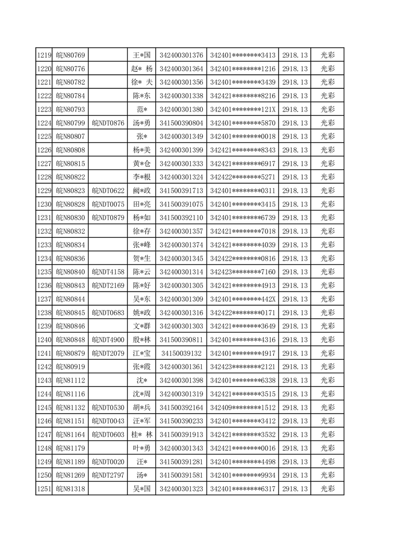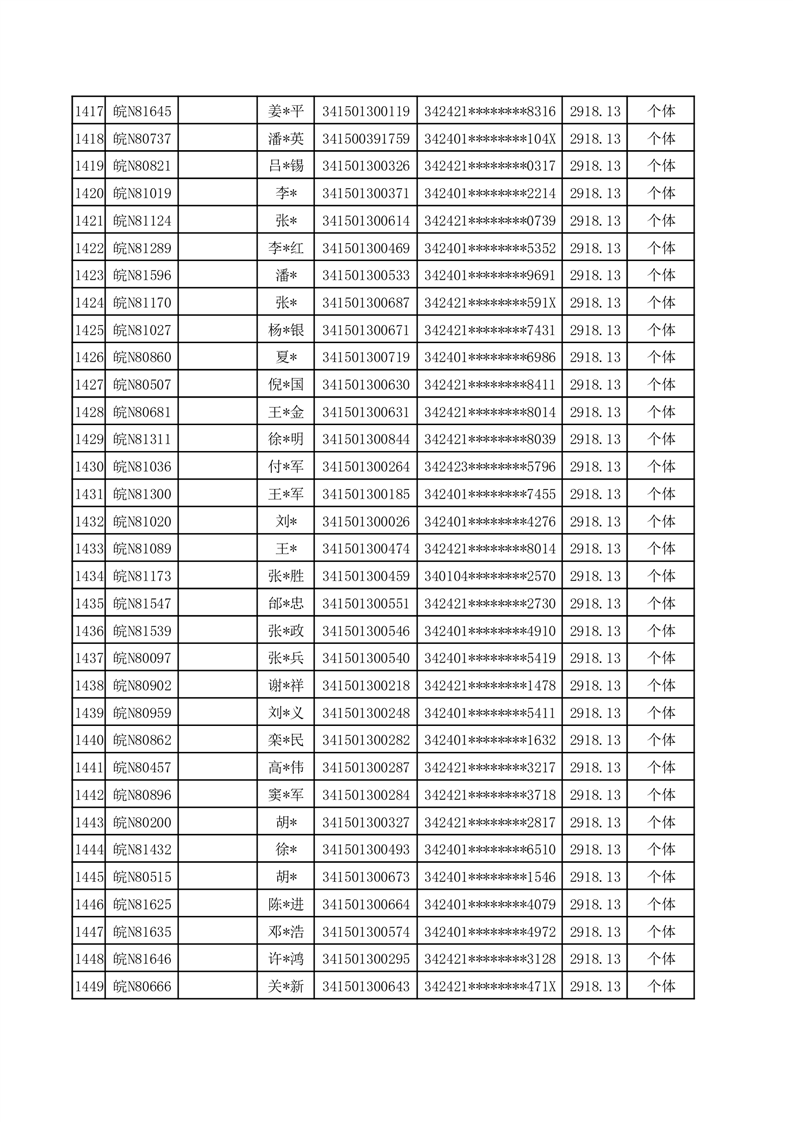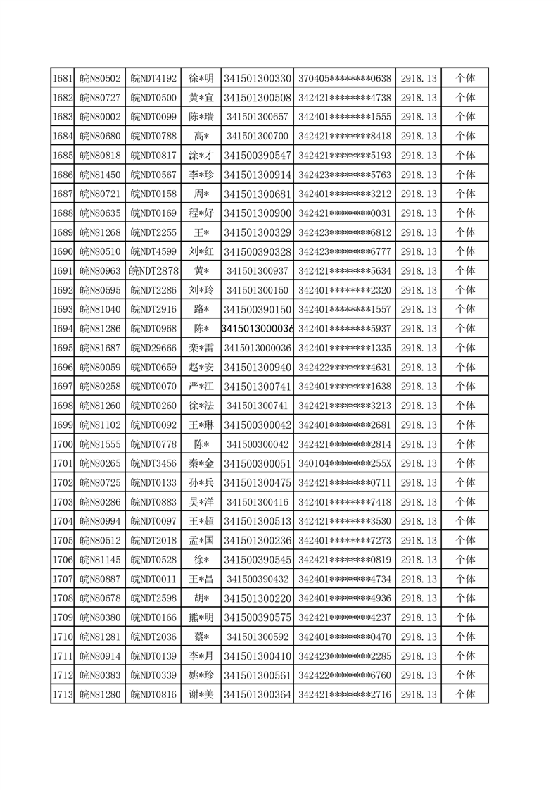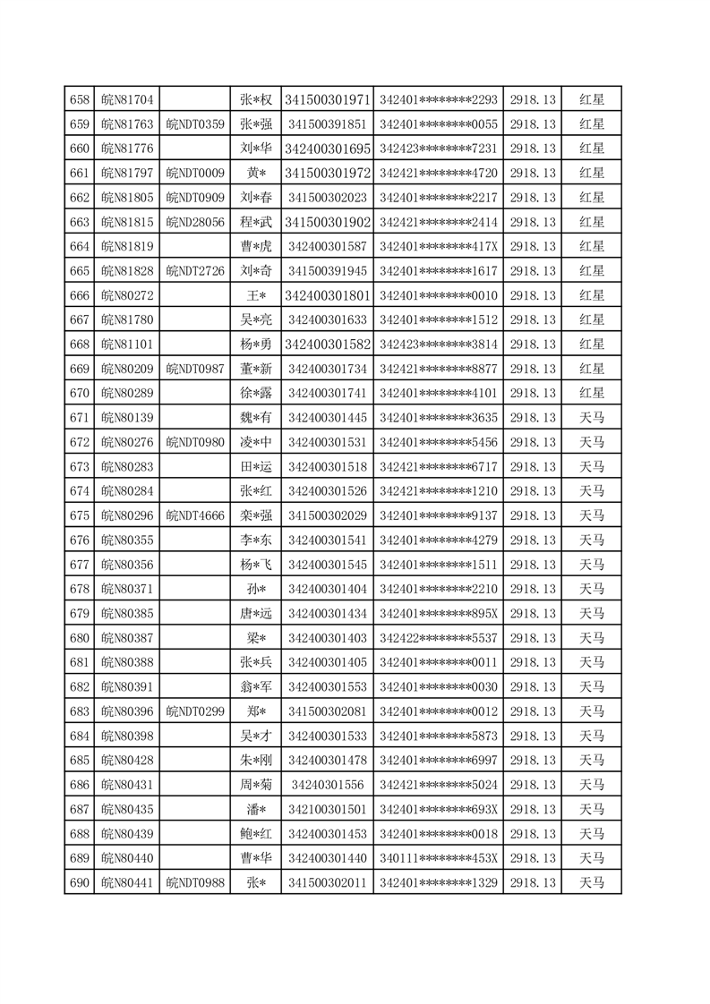 《六安城区2024年度出租汽车城市交通发展奖励资金发放信息表》