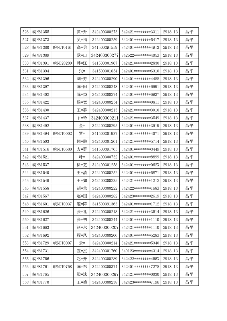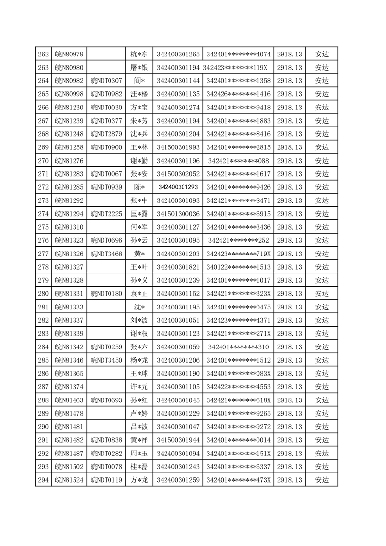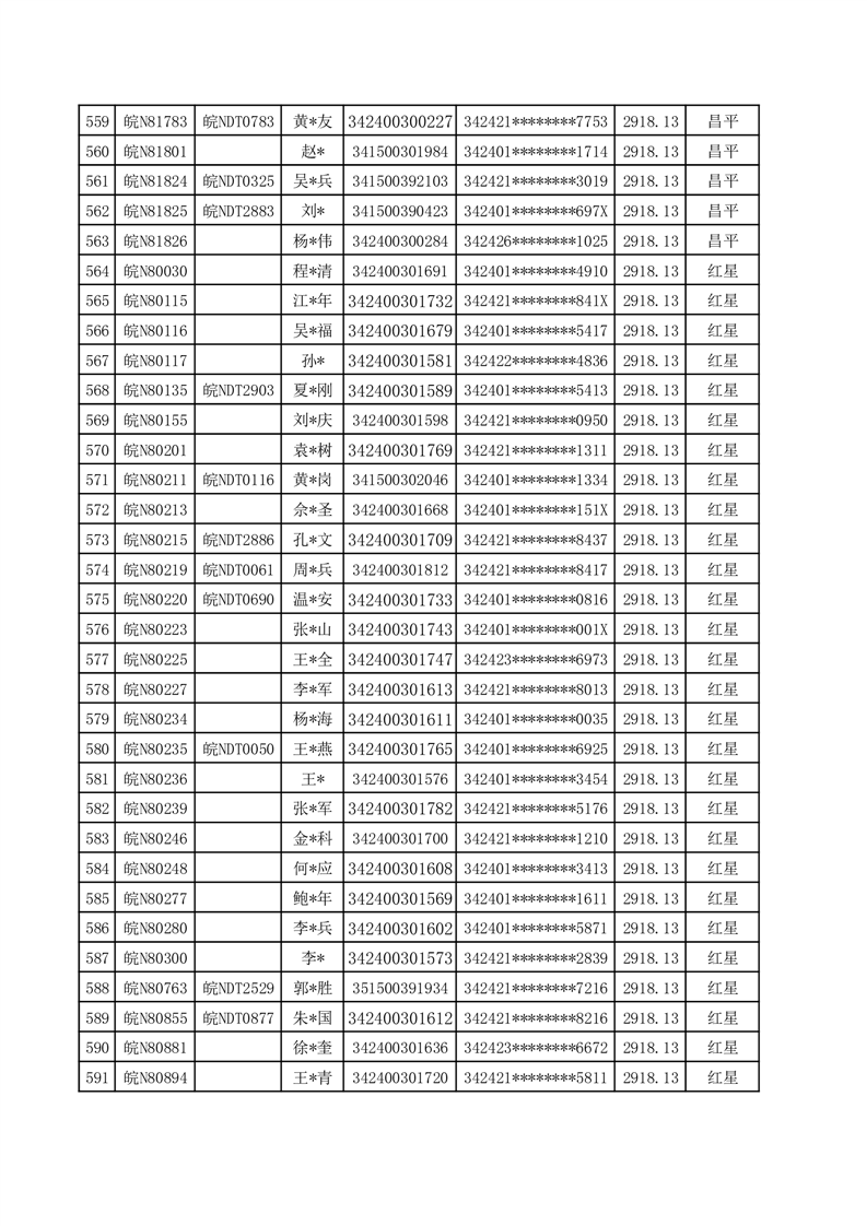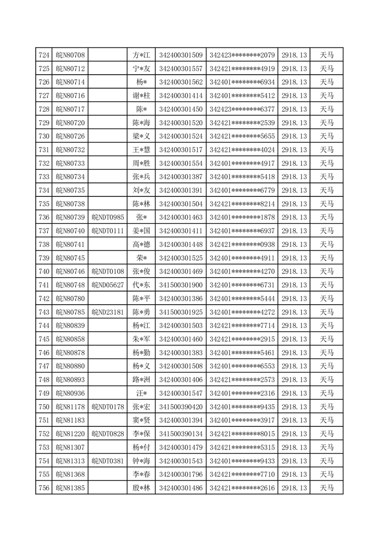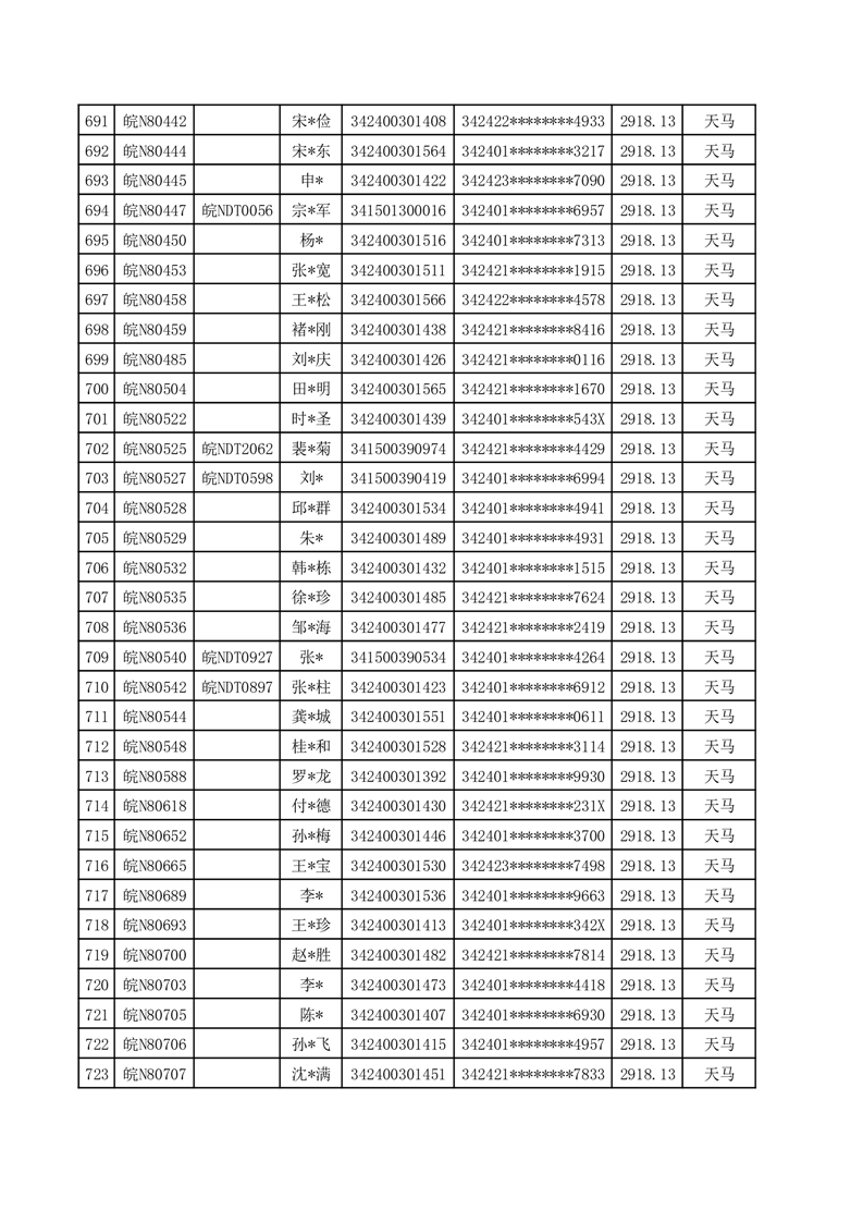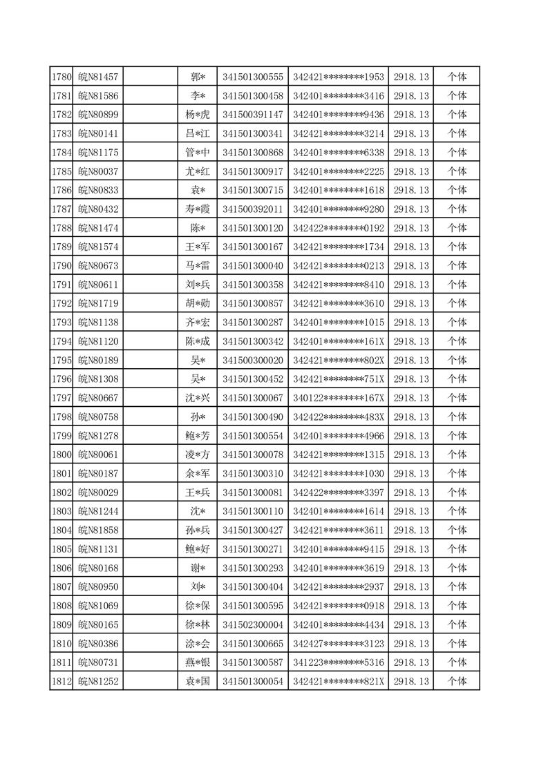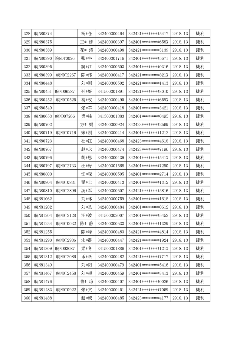 《六安城区2024年度出租汽车城市交通发展奖励资金发放信息表》