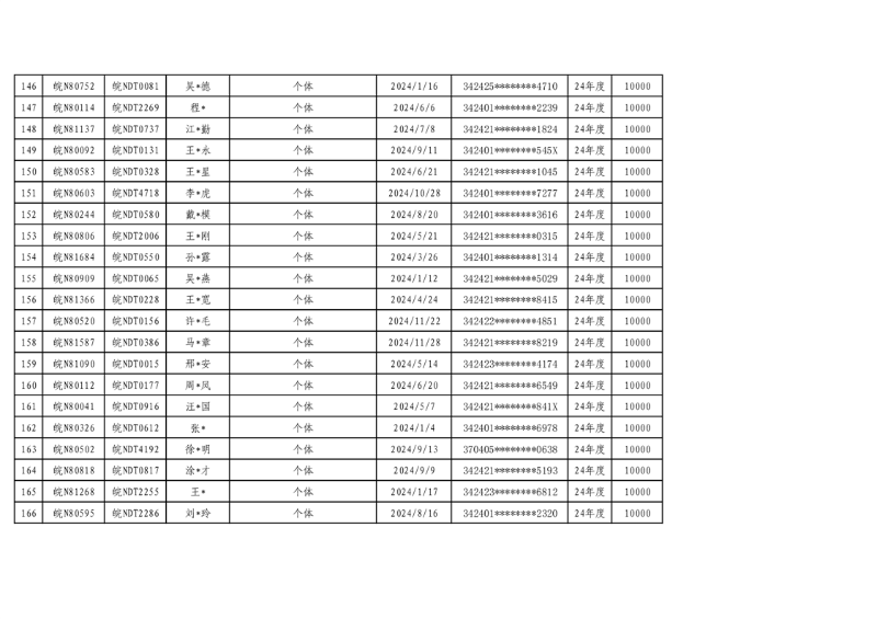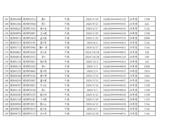 《六安城区2024年度新能源出租汽车推广补贴信息表》