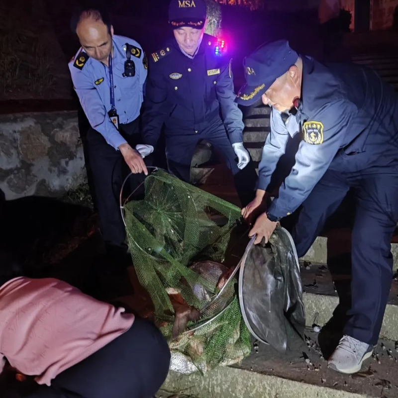 日前,由县禁捕办组织,县公安局牵头,县农业农村局、县港航服务中心、县农业综合执法大队工作人员组成的禁捕工作组,前往丰乐河、杭埠河开展联合执法行动,巡查水域内是否存在电打鱼、地笼网、丝网、垂钓等违法捕捞行为。当晚,几名群众来到河边准备收网,正当他们还没来得及看清楚网中的收获,就被岸边的本次行动执法人员抓了个正着。经清点,网内共计捕捞到大大小小的鱼100余条,经认定,他们使用的渔网为禁用渔具。
