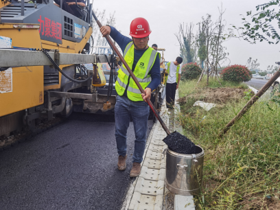 该工程坚持严把材料关。对厂家资质、产品严格考察把控,确定主材料供应商6家。材料进场需经三方检验,同时做好样品试验抽检,从源头把控,保障材料品质。严把施工关。严格按照施工工艺要求作业,对路面基层的压实度、平整度、纵断面高度、强度全面检查,发现问题及时处理。多台摊铺机组成联合梯队进行摊铺作业,保障路面承载及抗震抗压指标。严把进度关。以合周高速预计建成时间节点前置,同时放足提前量。准备充裕的人员、车辆、机械,倒排工期,挂图作战,根据天气提前合理安排施工工艺。严把安全关。以“一失万无”的谨慎细致抓安全工作,每周安全生产例会进行安全交底和技术交底,对夏季雨、高温等施工不良天气未雨绸缪,制定防暑降温措施和安全措施,施工期间未发生一起意外事故,也未发生过任何安全施工事件。