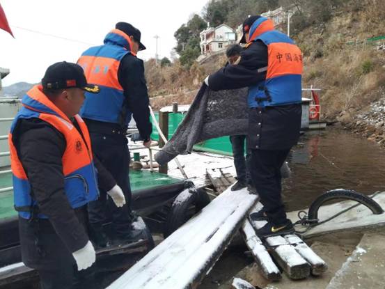 金寨县地方海事(港航)管理服务中心梅山、麻埠海事所一线海事人员绷紧安全之弦,加大渡口渡船巡查力度,及时将天气预警信息通过微信、电话等方式告知各渡船船主及涉水乡镇乡管员,安排部署应对低温雨雪冰冻灾害天气工作。为及时消除雨雪天气安全隐患,防止乘船人员跌倒、落水,安排工作人员在重点渡口、码头上下河路段、船头甲板及有群众上船的湿滑地方,铺设防滑毯设施,防滑毯的铺设犹如雪中送炭,让出行的群众倍感温暖,亦为冬日的严寒带来一丝暖意。同时叮嘱渡工谨慎驾驶,要求渡工要强化责任意识,时时刻刻严格细致做好安全保畅工作,严格遵守避碰规则和恶劣天气停航规定,服务群众涉水出行平安畅通。截至目前,出动执法人员10余人,发布预警信息14条,发放防滑毯300米,全力守护群众温暖出行。