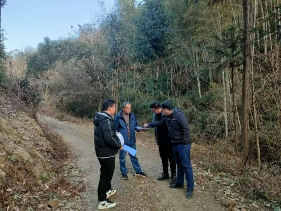 图为 金寨县交通运输局工作人员对入户道路数据进行现场核查